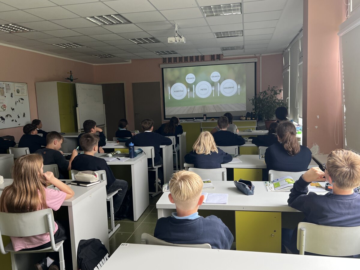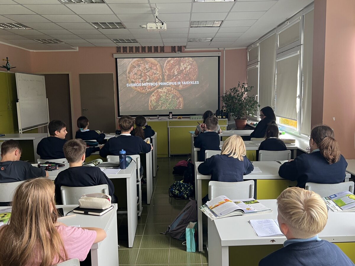 Gamtos mokslų ir biologijos pamokose 5–8 klasių mokiniai klausė informacinio pranešimo „Sveikatai palanki mityba ir fizinis aktyvumas“. Jo metu mokiniai sužinojo, kaip subalansuota mityba ir judėjimas padeda išlaikyti gerą savijautą bei stiprina imunitetą.