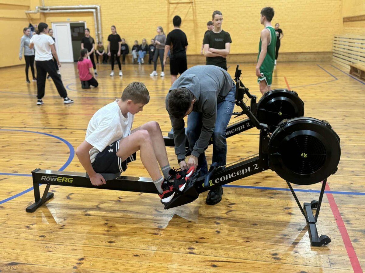 Gruodžio 3 rytą užėjus į sporto salę daug kam kilo klausimas, kas čia vyksta? Kas čia per nauji, nematyti prietaisai stovi sporto salės viduryje. Atsakymas paprastas, svečiuose Lietuvos irklavimo federacijos treneriai. Ką jie čia daro? Ieško naujų Lietuvos talentų, kurie galėtų garsinti Kaišiadorių, o gal ir Lietuvos, vardą.