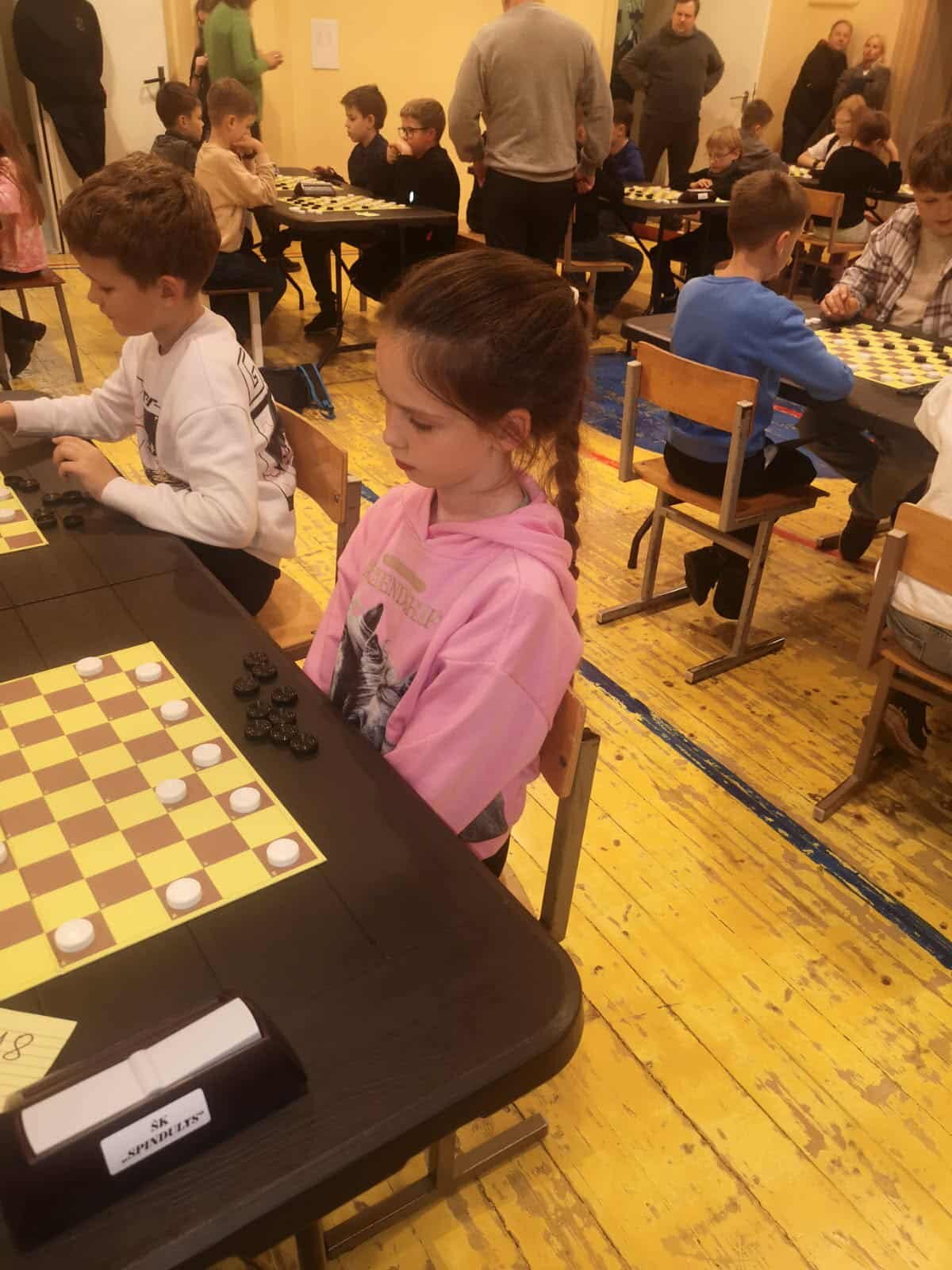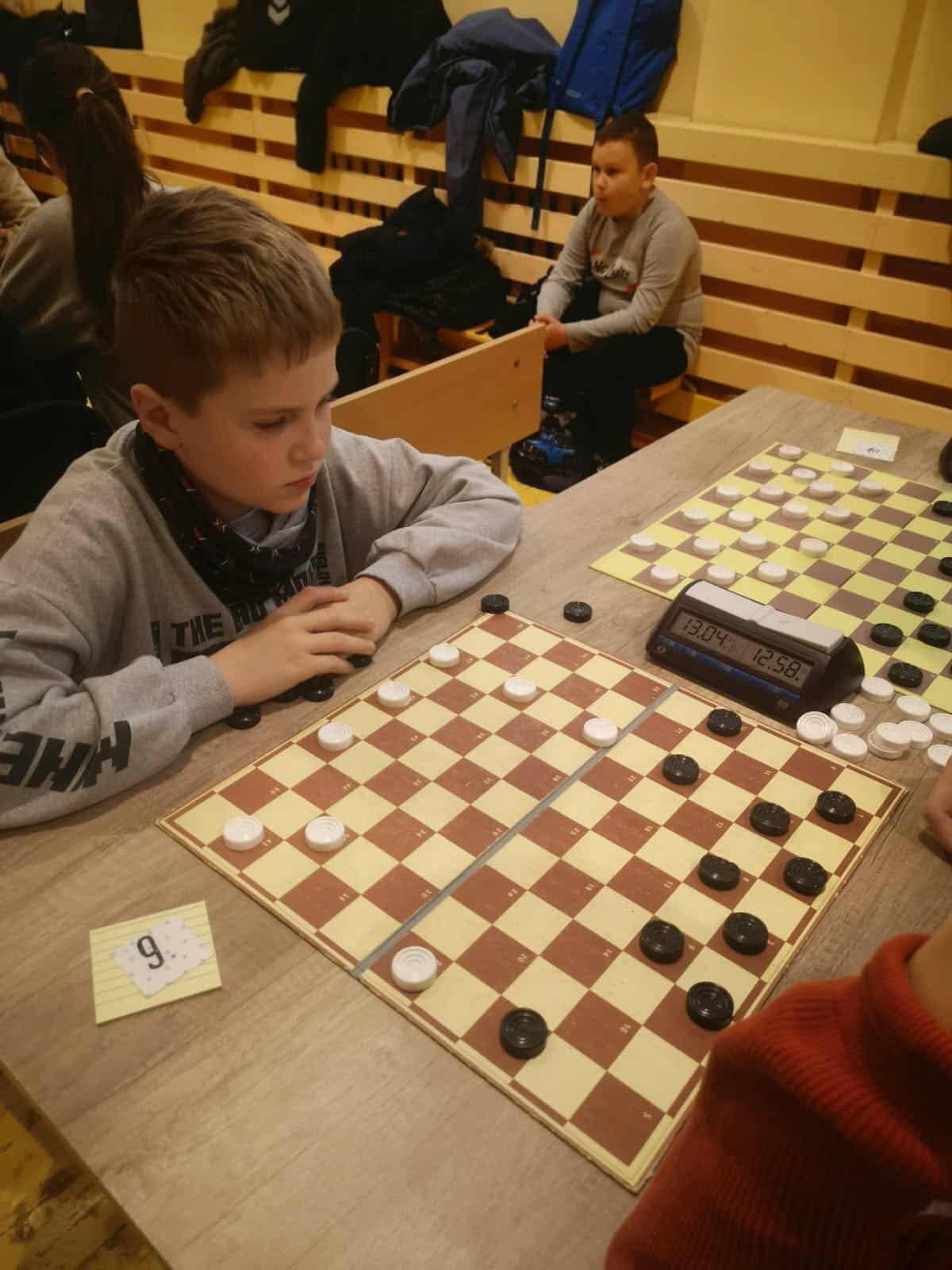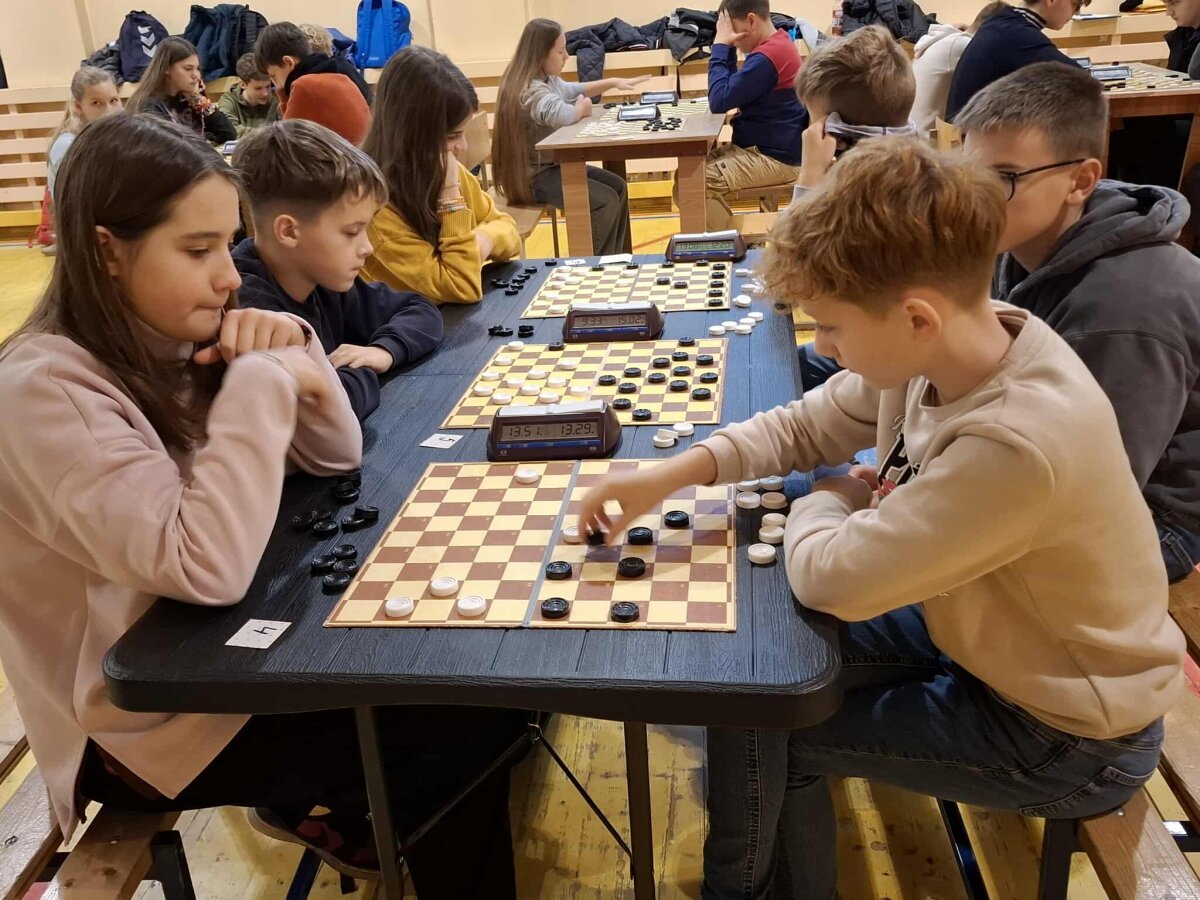 Grupėje iki 8 metų žaidė antrokai Elzė Tomkutė ir Majus Pilkis. Tai buvo jų pirmosios varžybos prie šimtalangės lentos ir tapo gera praktika ateities startams. Jaunučių iki 13 metų grupėje Progimnazijai atstovavo 3 penktokai. Geriausiai sekėsi Tajui Muškietai, kuris pateko į pirmąjį dešimtuką. Nedaug atsiliko Adrijus Tiukša ir Domas Sabaliauskas. Daugiausiai dalyvių (39) susirinko vaikų iki 10 metų. Progimnazijai atstovavo 8 jaunieji šaškininkai. Maloniai nustebino ketvirtokė Joana Kobilinskaitė - ji pasiekė 4 pergales, 2 partijas pralaimėjo, 1 baigė lygiosiomis, pelnė 9 taškus ir užtikrintai užėmė trečiąją vietą. Tai puikus Joanos pasiekimas. Joana žaidė pakankamai atsakingai, su dideliu noru laimėti. Sveikinimai su bronzos medaliu! 8 taškus surinko trečiokas Domantas Jurevičius, po 7 taškus – ketvirtokas Joris Garliauskas, trečiokas Joris Barysas ir antrokė Liepa Čiumbaraitė. Jie įsitvirtino lentelės viduryje. Kiek mažiau taškų trečiokų Dominyko Kasparo, Mildos Tomkutės, Augusto Strekausko, Fausto Janiulio ir Karinos Bušmaitės sąskaitoje. Šioje amžiaus grupėje jie buvo vieni jauniausių ir turės galimybę varžytis visus kitus metus.