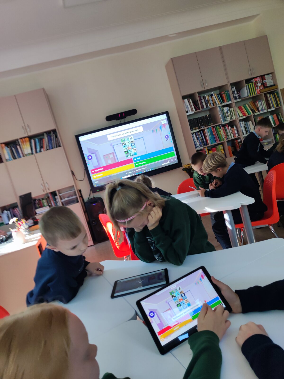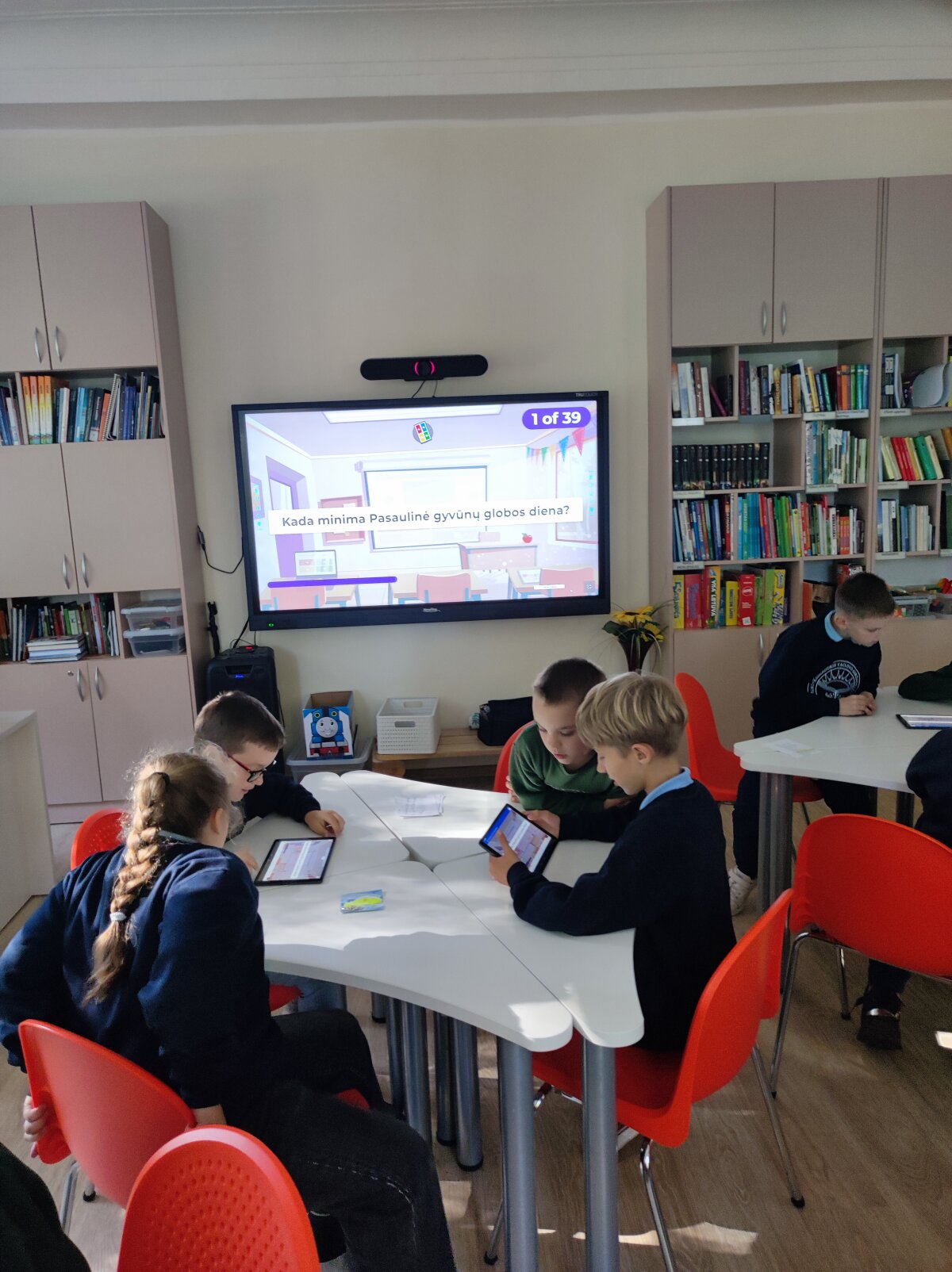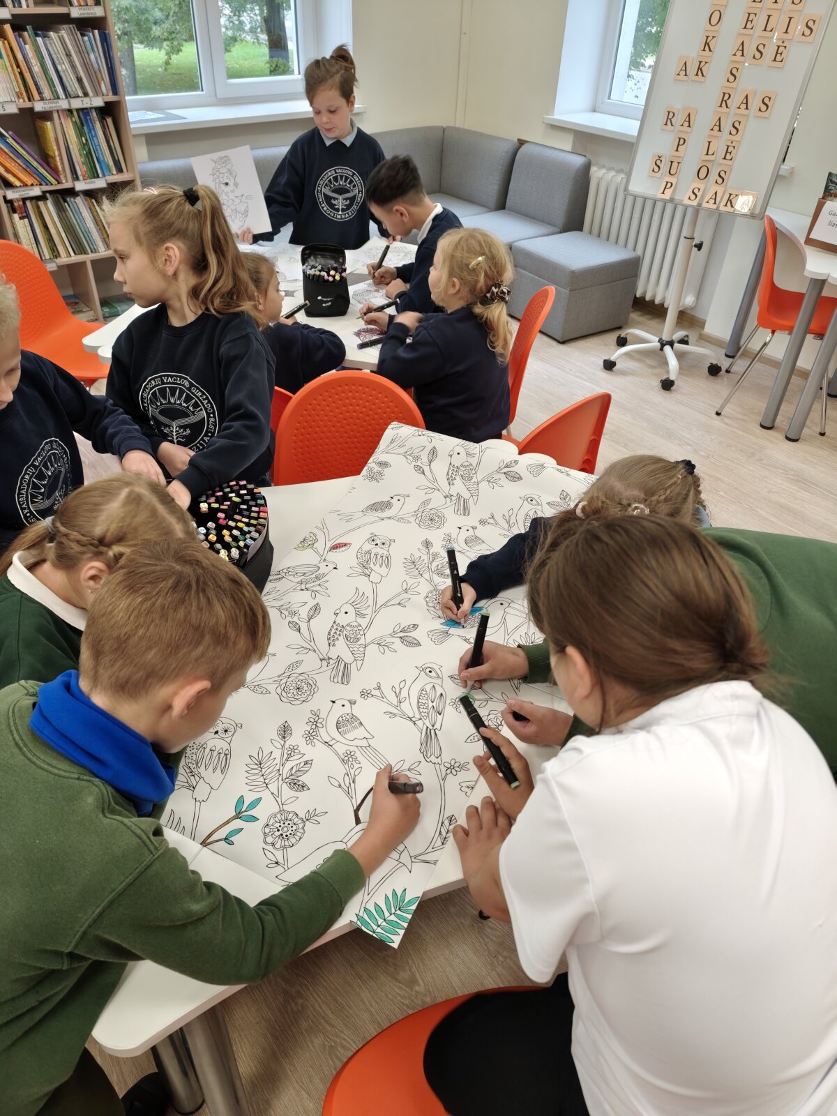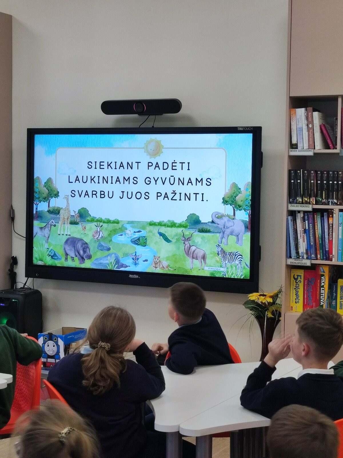 Ar žinote pavojingiausius Lietuvos gyvūnus? O, kad pats pavojingiausias yra erkė! O koks gyvūnas pasaulyje greičiausias ir didžiausias? Kur gyvena pingvinai ir baltosios meškos? O kad baltų meškų odos spalva juoda? Į šiuos ir dar daugiau klausimų atsakymų bibliotekos edukacijoje „Gyvūnų enciklopedija“ ieškojo trečių klasių mokiniai. Visą savaitę biblioteka buvo sausakimša mokinių, norinčių dalyvauti pertraukų veiklose „Spalvoti gyvūnai“. Dailės pamokų metu visi norintys piešė, iliustravo, spalvino gyvūnijos pasaulį, augintinius. Dar daugiau sužinoję mokiniai tikrai labiau mylės ir rūpinsis augintiniais ir laukiniais gyvūnais.