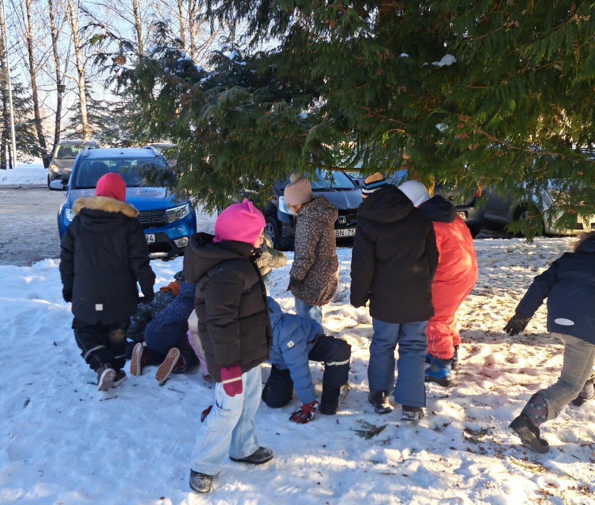 Ši žiema ypatinga: visur daug sniego, šaltukas kandžiojasi ne juokais, todėl šalia mūsų žiemojantiems paukščiams darosi vis sunkiau susirasti maisto. Žiema jiems – tikras išbandymų metas. Todėl pirmokai nusprendė veikti ir padėti sparnuočiams ištverti žiemos išbandymus. Pirmiausiai jie susipažino su Lietuvoje žiemojančiais paukščiais ir jų mitybos ypatumais. Išsiaiškino, kad paukščiams negalima siūlyti sūdytų ar rūkytų lašinių, kepintų ar sūdytų sėklų, riešutų, taip pat – maisto likučių, ypač pasenusių maisto produktų. Pasirūpino įvairiomis sėklomis, riešutais. Technologijų pamokos metu nulipdė maisto rutulius paukšteliams iš riebalų ir įvairių sėklų. Mokytojas Romaldas Kriugžda padėjo įrengti net tris lesyklėles. Dabar kiekvieną dieną vaikai rūpinasi, kad lesyklose netrūktų maisto, kad jos neliktų be priežiūros ir nuolat jas papildo. O koks nuostabus gyvosios gamtos realybės šou atsiveria už klasės lango!