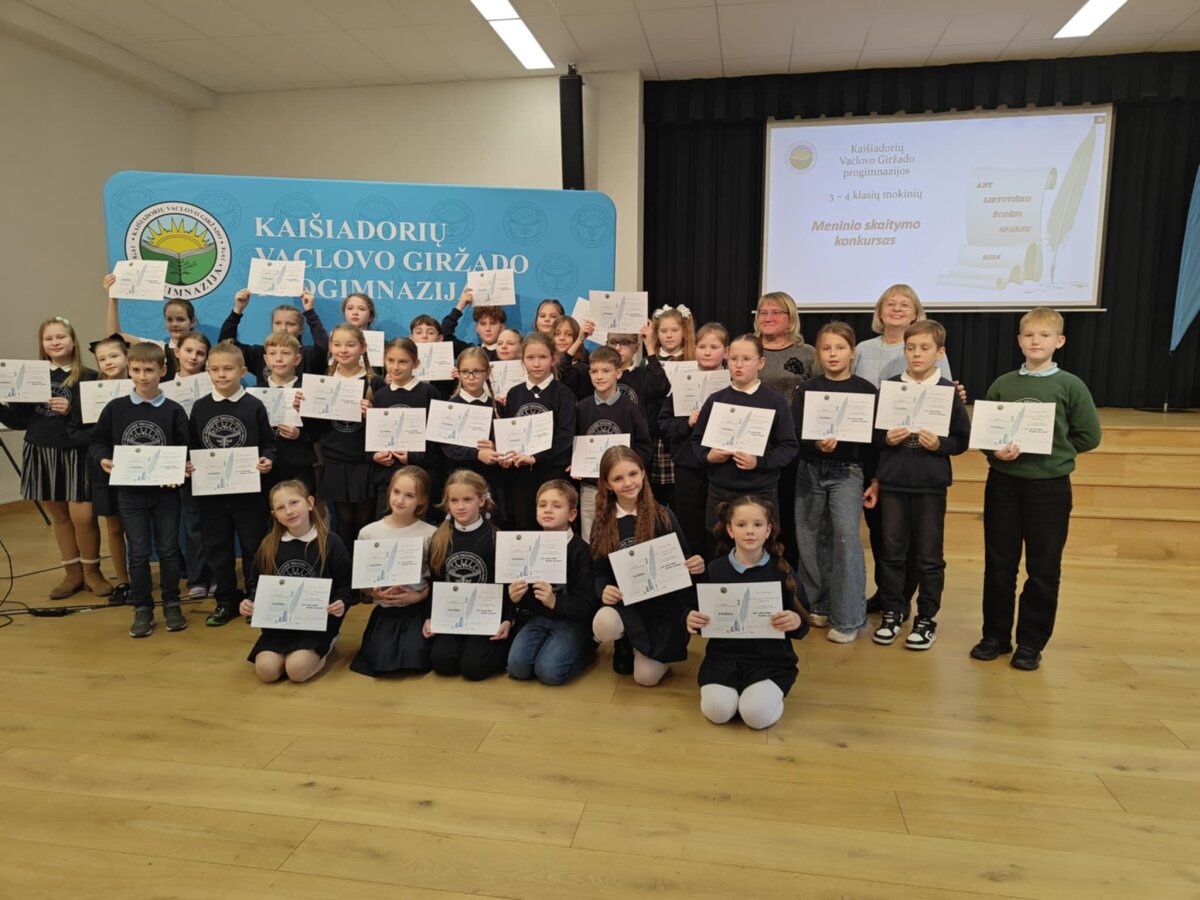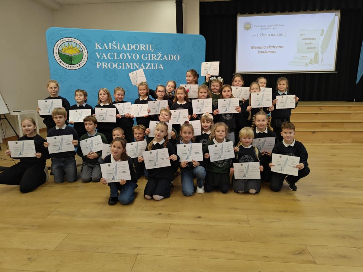 Lapkričio 11-12 dienomis Progimnazijos didžiojoje salėje rinkosi 1-4 klasių skaitovai į pradinių klasių meninio skaitymo konkursą „Ant lietuviško žodžio sparnų“. Jame dalyvavo 60 mokinių. Konkursą pradėjo 2d klasės mokinė Arista Tiukšaitė su muzikiniais kūriniais „Užaugti skubu“, „Dvidešimt žąsyčių“. Konkursą vedė ir skaitovus bei mokytojas pristatė 4b klasės mokiniai Tėja Ožalinskaitė ir Ainius Radzevičius. Konkurso vertinimo komisija – Aušra Kudrevičienė ir Miglė Balčiūnaitė-Kazanavičienė, direktoriaus pavaduotojos ugdymui, Jūratė Grinkevičienė, logopedė, ir Rasa Rimkuvienė, bibliotekininkė, į rajono meninio skaitymo konkursą, kuris vyks lapkričio 18 dieną 10 val. Kaišiadorių jaunimo centre „Mazgas“, išrinko 12 skaitovų. Meninio skaitymo konkurso laureatais tapo:
