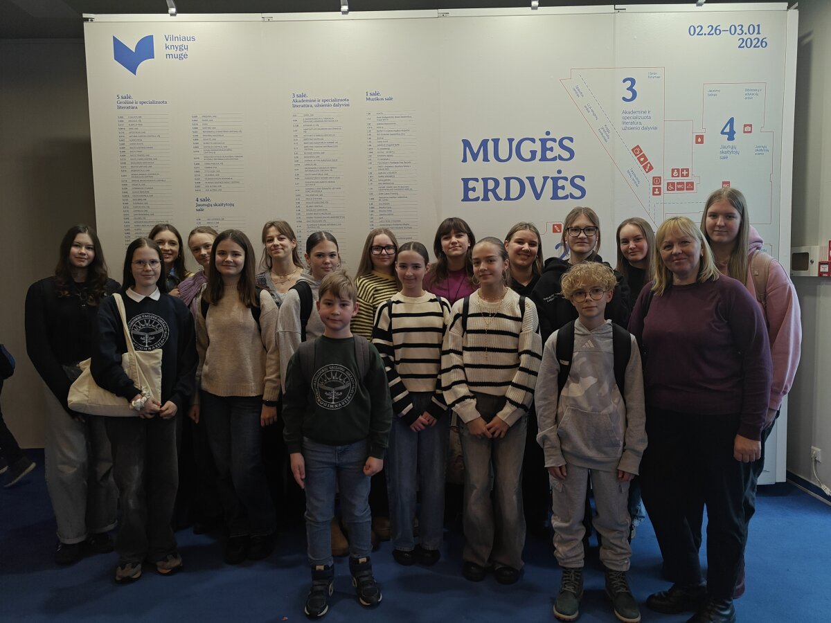 Vasario 26 dieną Progimnazijos meninio skaitymo konkurso dalyviams mokykla organizavo paskatinamąją išvyką. Ketvirtadienio rytą vykome į Vilniaus knygų mugę kurioje knygos tampa pokalbiais, o skaitytojai ir kūrėjai susitinka vienoje erdvėje. Tai didžiausias literatūros ir kultūros renginys Baltijos šalyse ir tradicija, kuri kasmet į Vilnių sugrąžina bendrystę, smalsumą ir atradimų džiaugsmą. Į mugę važiavome autobusu, kelionės metu bendravome, dalinomės ko tikėsimės, ką norėsime išbandyti ir nuveikti, kokias knygas pamatysime.