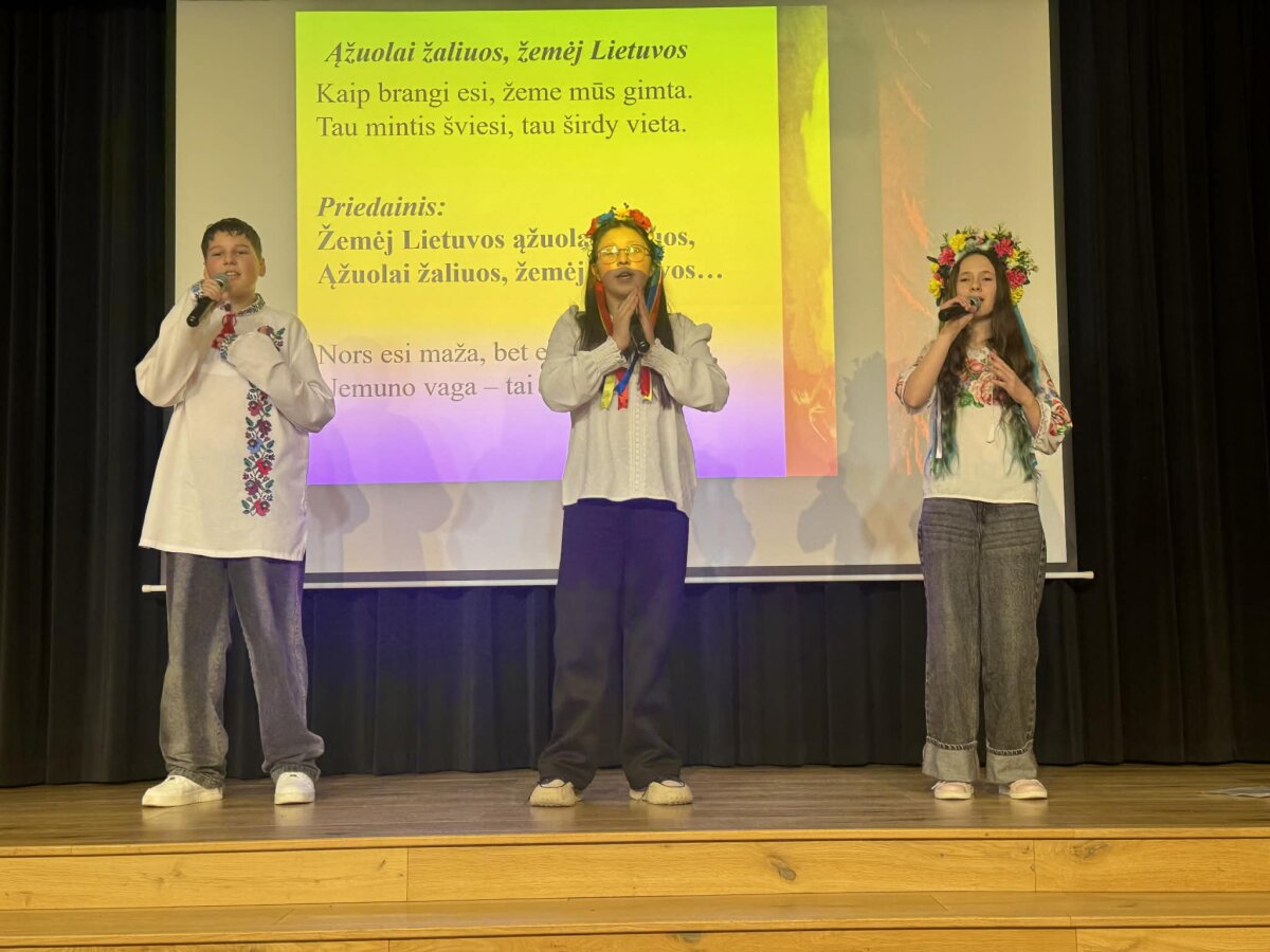 Renginio metu penktųjų klasių mokiniai susivienijo tarsi vienas didelis choras – skambėjo liaudiškos ir tradicinės dainos, priminusios mūsų tautos istoriją, papročius ir meilę gimtajai šaliai. Šventės dalyviai taip pat klausėsi jautriai deklamuojamų eilių, kurias skaitė 7a klasės mokinė Skaistė Žemaitytė ir 6c klasės mokinė Lukrecija Joneliūnaitė. Renginyje taip pat buvo prisiminta ir šiandienos pasaulio realybė – išreikštas palaikymas Ukrainos tautai. 5e klasės mokiniai atliko ukrainiečių liaudies dainą, kuri tapo jautriu solidarumo ir bendrystės simboliu.