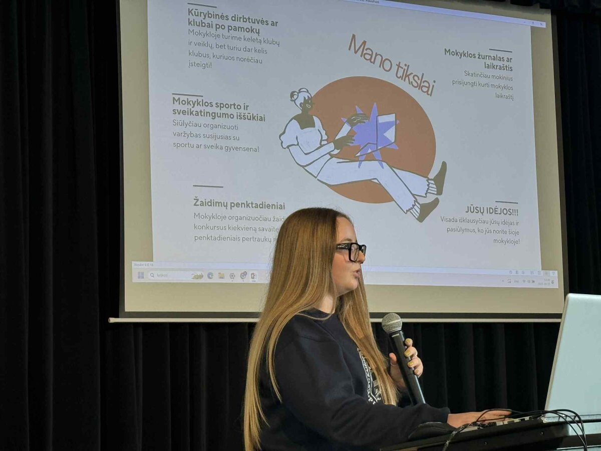 Šių metų rinkimai – išskirtiniai. Į prezidento postą kandidatuoja dvi bendravardės Liepos, klasės draugės: Liepa Meilutytė ir Liepa Ušinskaitė (8b), kurios jau antrą kartą stoja į šią atsakingą kovą. Viena iš jų – dabartinė mokinių prezidentė, siekianti tęsti pradėtus darbus. Taip pat dėmesio centre – Smiltė Kerševičiūtė (6b), jauniausia kandidatė mūsų progimnazijos istorijoje, pasiryžusi išbandyti save lyderystės kelyje.