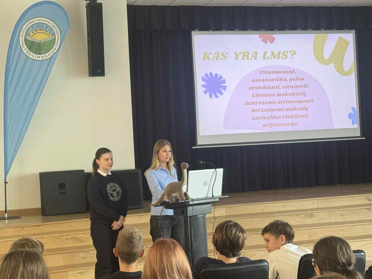 Dėkojame aktyvioms Lietuvos moksleivių sąjungos narėms ir skatiname mokinius imtis aktyvios lyderystės. Daugiau apie Lietuvos moksleivių sąjungą galima ieškoti internetinėje svetainėje https://moksleiviai.lt/apie-mus/