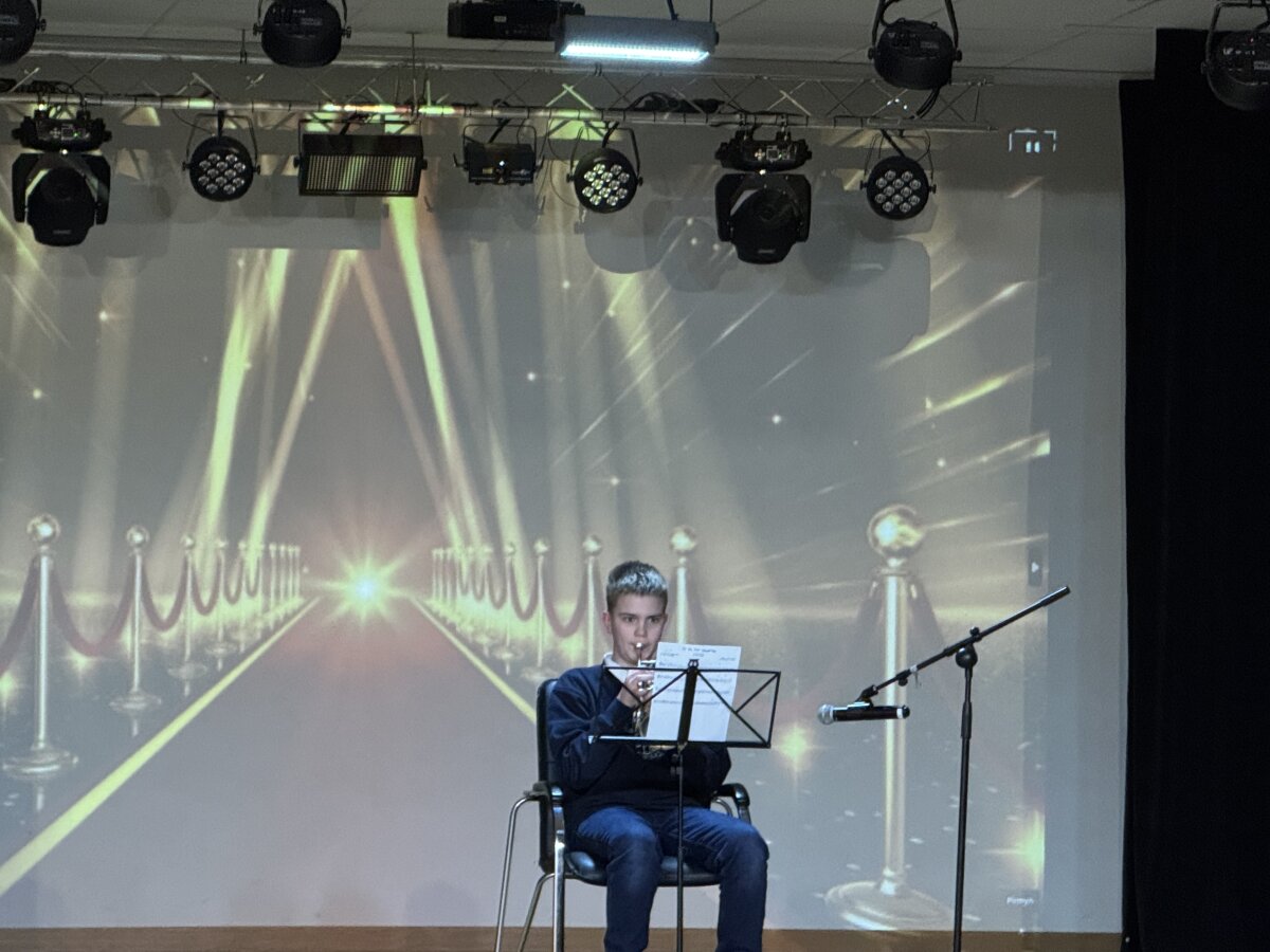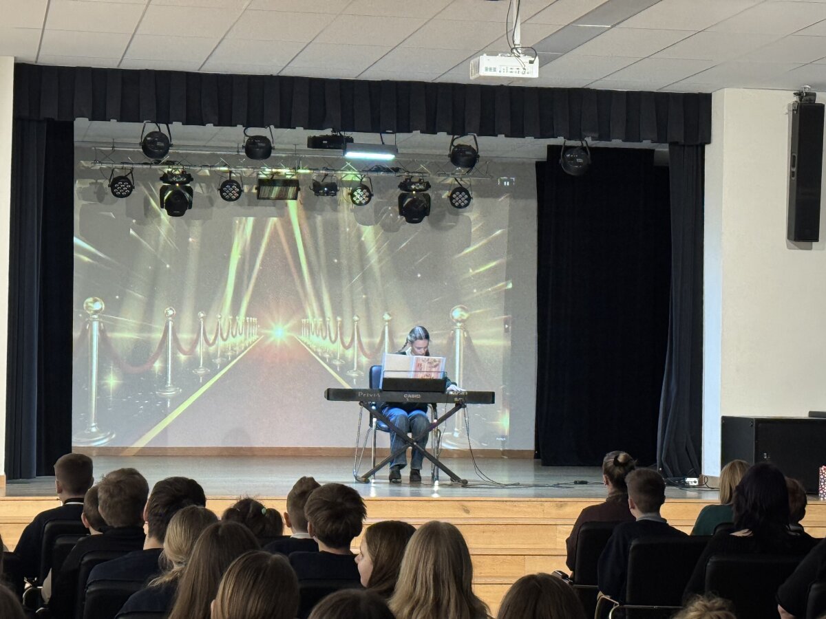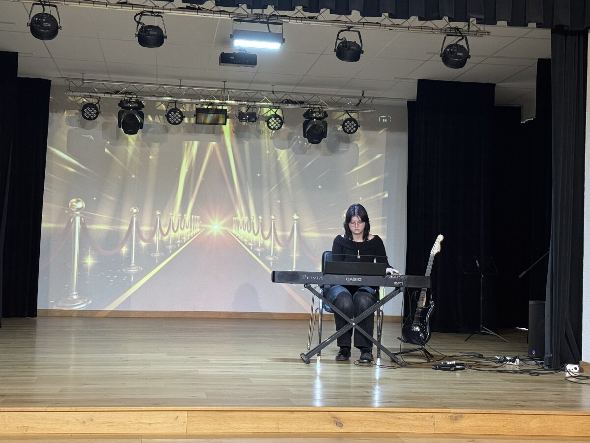 Liepa Gylytė (1a) atliko gimnastikos pasirodymą. Jos judesiai buvo lengvi, grakštūs ir spindintys tarsi tikri deimantai. Sesių Ernestos (7b) ir Kamilės (6e) duetas skambėjo jautriai bei nuoširdžiai. Tajus Muškieta (5b) deklamavo Juozo Erlicko eilėraštį, sukurdamas ypatingą nuotaiką. Arnas Persenevičius (7e) saksafonu atliko visiems gerai žinomą lopšinę Twinkle Twinkle Little Star. Ugniaus Karpavičiaus (5d) pasirodymas buvo kupinas ritmo ir geros nuotaikos. Rugilė Trečiokaitė (5a) pianinu atliko Martha Mier kūrinį Wild Horses, kurio skambesys mums priminė laukinių arklių veržlumą ir laisvę. Savo kūrybą pristatė ir anglų kalbos mokytoja Ilona Vaitelienė – jos nerti, megzti darbai parodė, kad talentas neturi ribų. Emilis Bačiulis, Odeta Bogužaitė ir Sofia Khytushko (5e) atliko ukrainietišką dainą „Motanka“. Trijų balsų harmonija sukūrė ypatingą, paslaptingą atmosferą. Danielius Pilkis (6b) jautriais dainos žodžiais beldėsi į klausytojų širdis. Emilis Bačiulis (5e) antrą kartą pasirodęs scenoje visus labai nustebino – jis prancūziškai atliko Lou Deleuze dainą Ce Monde, 2025 metais laimėjusią Vaikų Eurovizijos konkursą. Motiejus Svorobovič (5e) entuziastingai atliko dainą „Poliarizuoti stiklai“, primindamas, kad pasaulį kiekvienas matome savaip. Renginį užbaigėme įspūdingu Evos Rainytės (8b) pasirodymu, mokinė pianinu ir gitara atliko legendinį grupės Queen kūrinį Bohemian Rhapsody. Tai buvo jaudinanti ir įsimintina pabaiga.