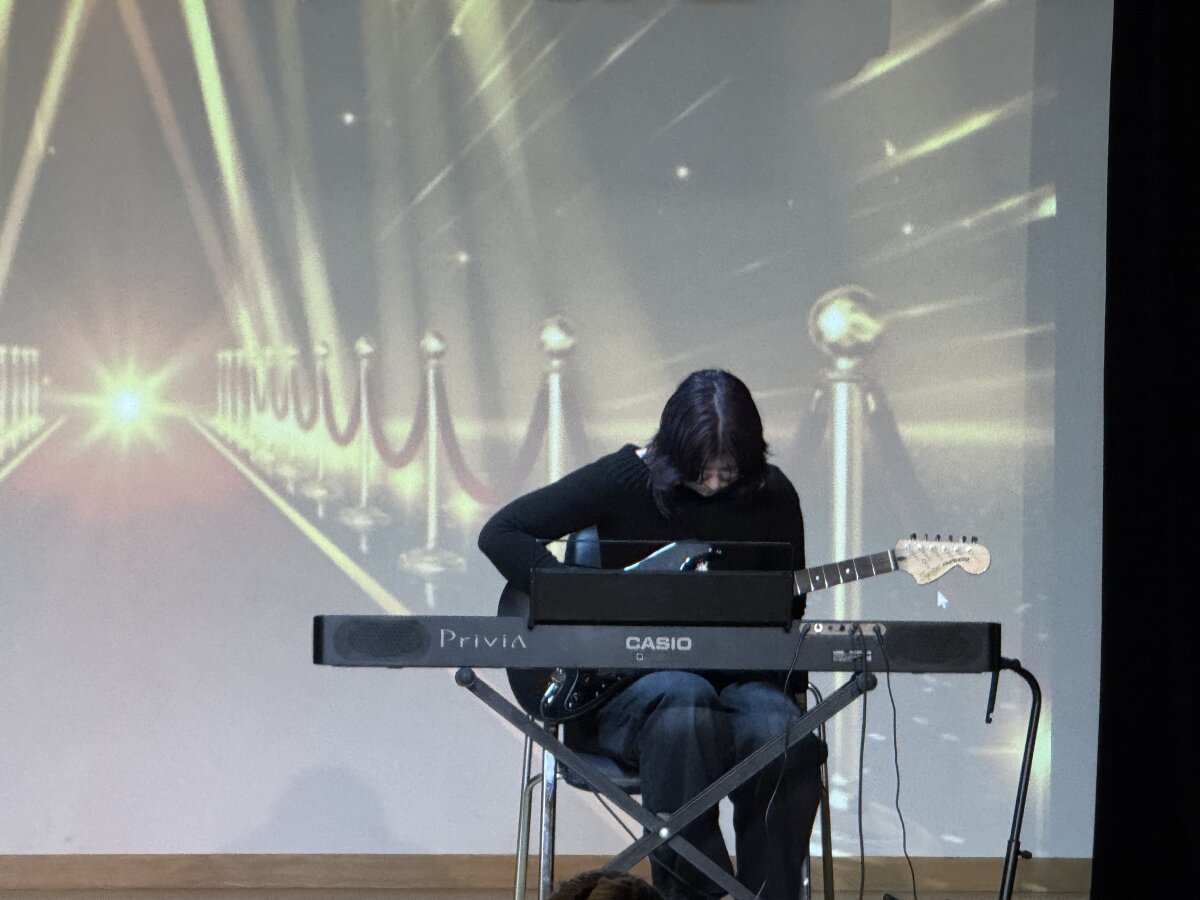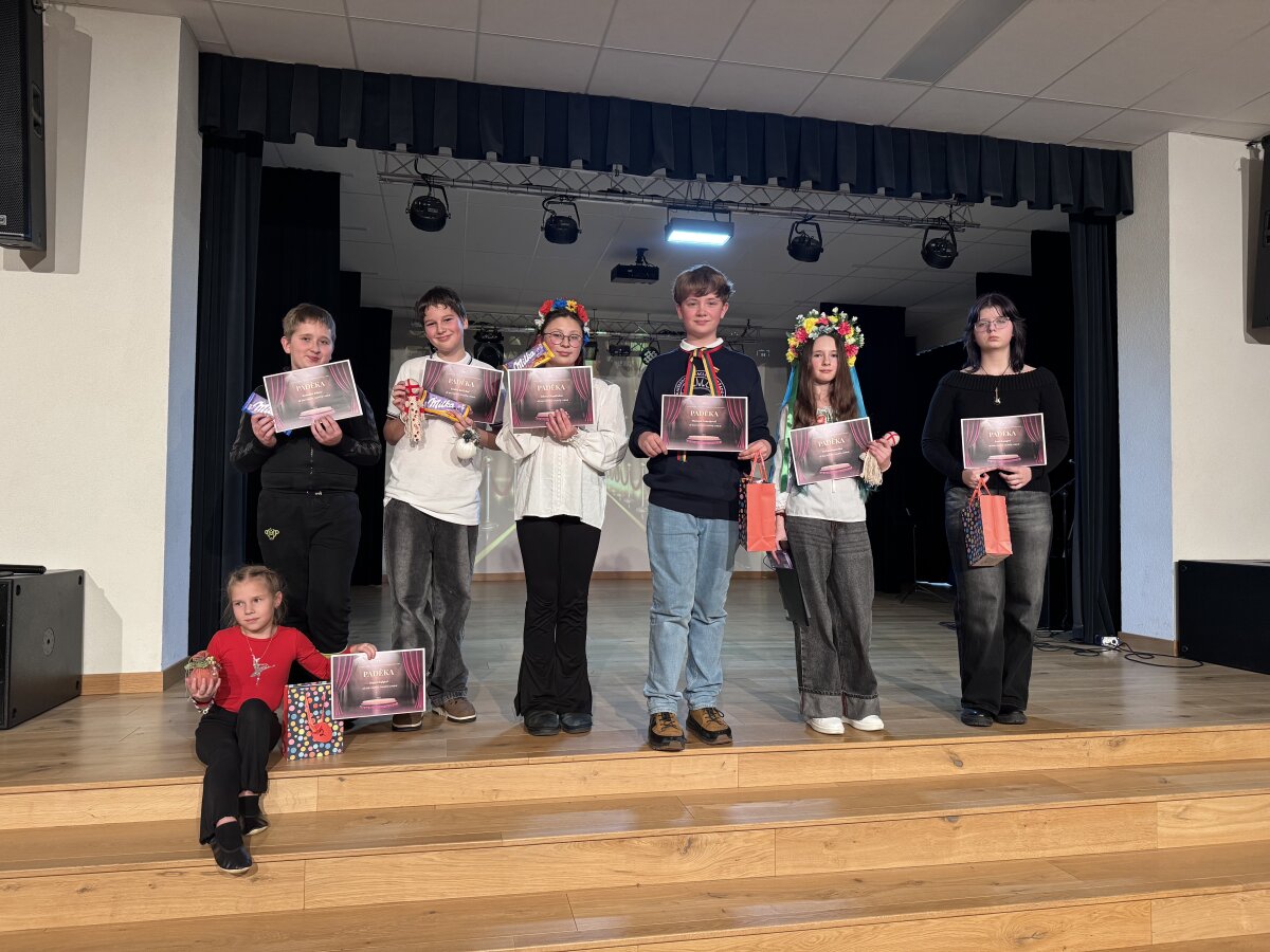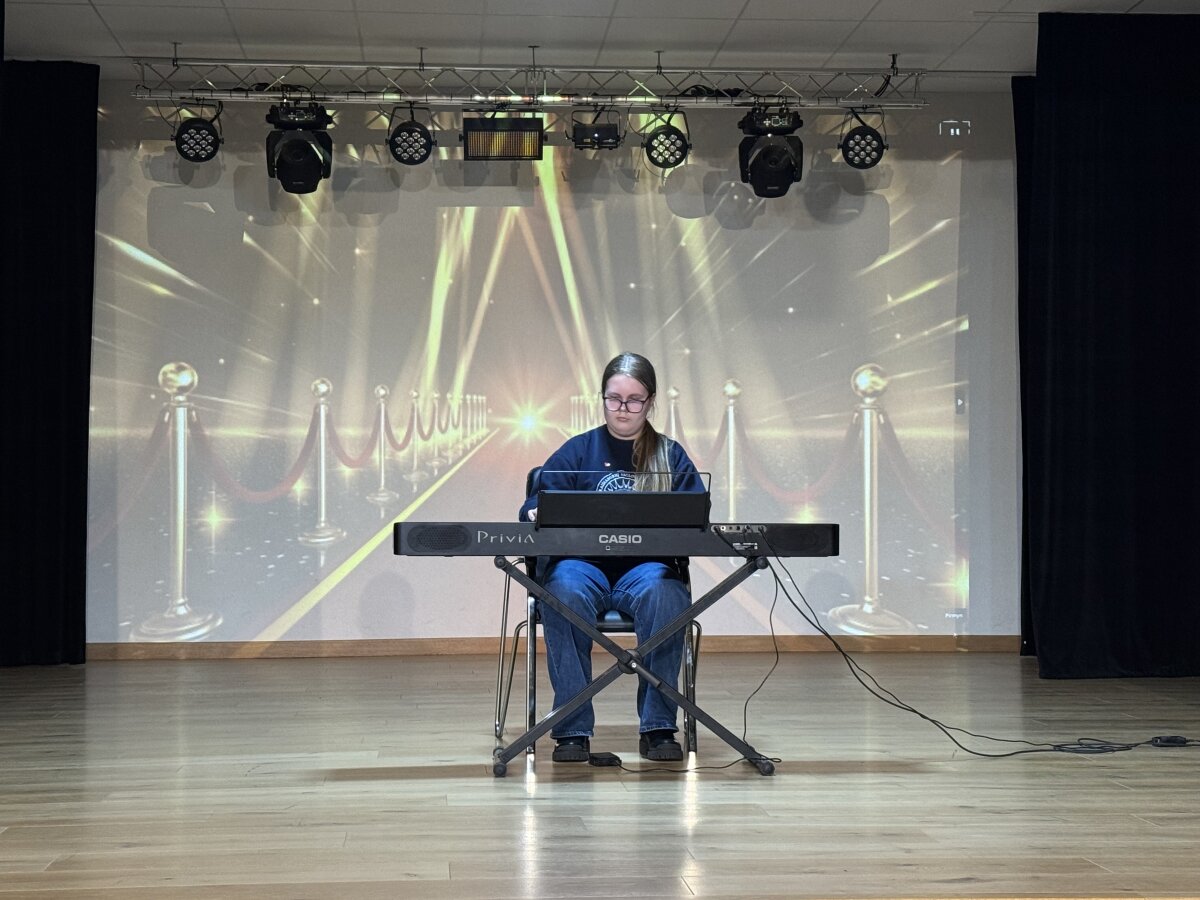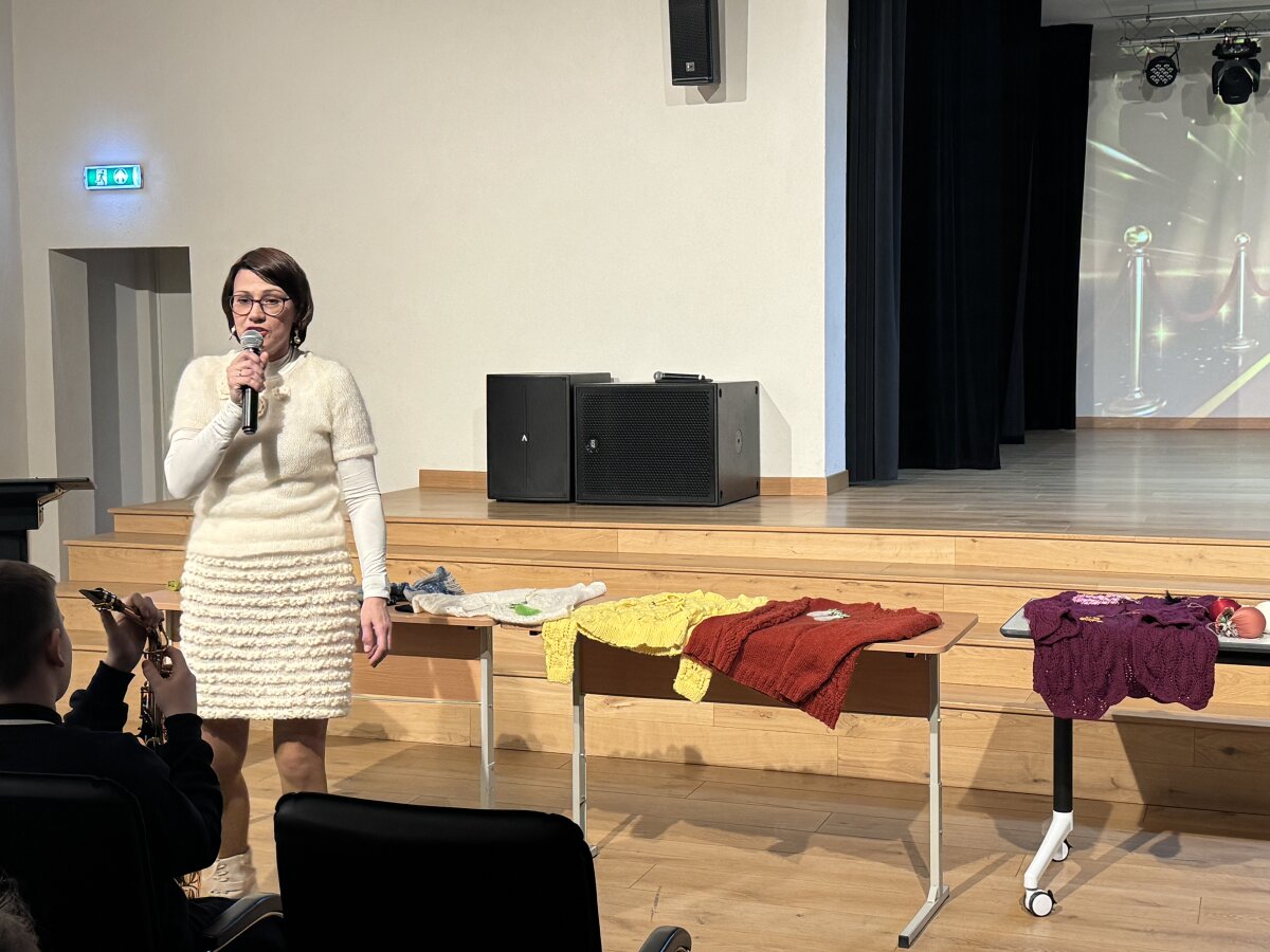Liepa Gylytė (1a) atliko gimnastikos pasirodymą. Jos judesiai buvo lengvi, grakštūs ir spindintys tarsi tikri deimantai. Sesių Ernestos (7b) ir Kamilės (6e) duetas skambėjo jautriai bei nuoširdžiai. Tajus Muškieta (5b) deklamavo Juozo Erlicko eilėraštį, sukurdamas ypatingą nuotaiką. Arnas Persenevičius (7e) saksafonu atliko visiems gerai žinomą lopšinę Twinkle Twinkle Little Star. Ugniaus Karpavičiaus (5d) pasirodymas buvo kupinas ritmo ir geros nuotaikos. Rugilė Trečiokaitė (5a) pianinu atliko Martha Mier kūrinį Wild Horses, kurio skambesys mums priminė laukinių arklių veržlumą ir laisvę. Savo kūrybą pristatė ir anglų kalbos mokytoja Ilona Vaitelienė – jos nerti, megzti darbai parodė, kad talentas neturi ribų. Emilis Bačiulis, Odeta Bogužaitė ir Sofia Khytushko (5e) atliko ukrainietišką dainą „Motanka“. Trijų balsų harmonija sukūrė ypatingą, paslaptingą atmosferą. Danielius Pilkis (6b) jautriais dainos žodžiais beldėsi į klausytojų širdis. Emilis Bačiulis (5e) antrą kartą pasirodęs scenoje visus labai nustebino – jis prancūziškai atliko Lou Deleuze dainą Ce Monde, 2025 metais laimėjusią Vaikų Eurovizijos konkursą. Motiejus Svorobovič (5e) entuziastingai atliko dainą „Poliarizuoti stiklai“, primindamas, kad pasaulį kiekvienas matome savaip. Renginį užbaigėme įspūdingu Evos Rainytės (8b) pasirodymu, mokinė pianinu ir gitara atliko legendinį grupės Queen kūrinį Bohemian Rhapsody. Tai buvo jaudinanti ir įsimintina pabaiga.