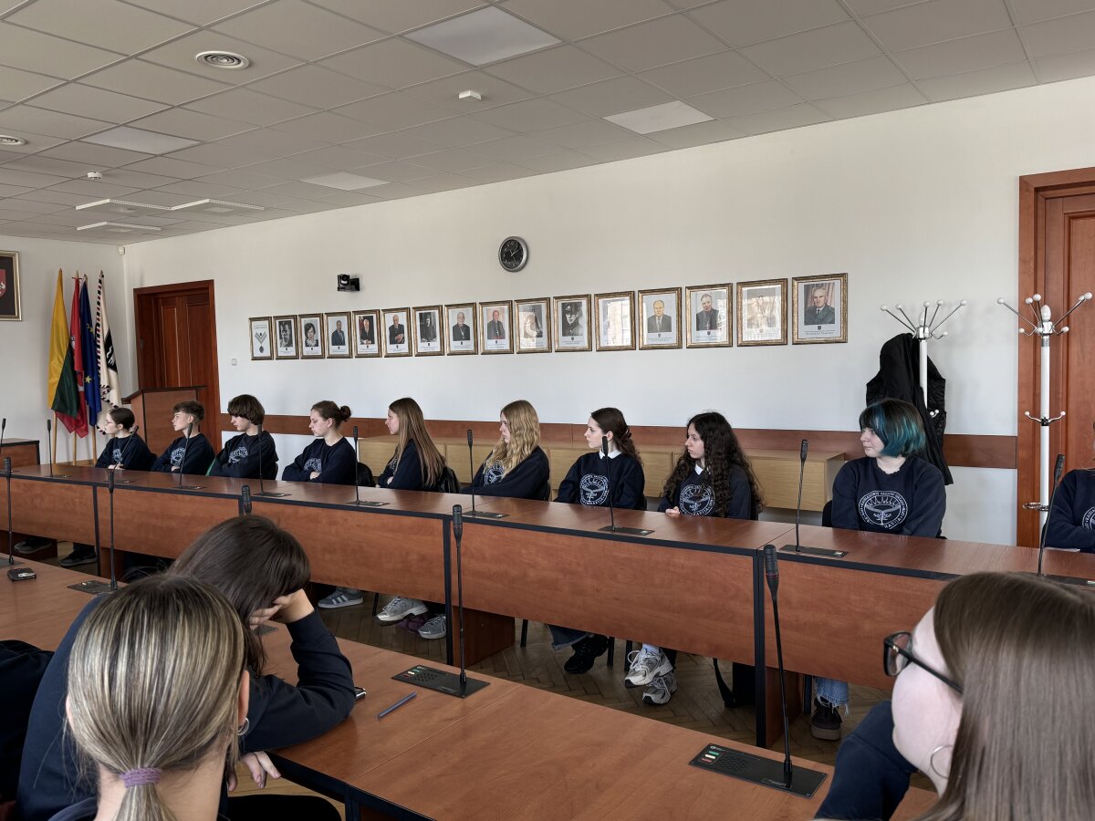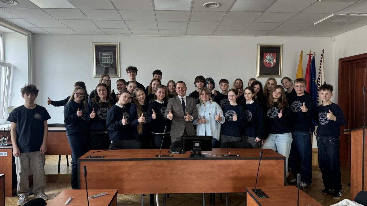 Dar rudenį, kai lankėmės Kaišiadorių rajono savivaldybėje norėdami pasveikinti su Savivaldos diena, buvome mero pakviesti į diskusiją apie lyderystę. Šį pasiūlymą džiugiai priėmėme ir su nekantrumu laukėme progos susitikti dar kartą. Pavasariui bundant, gausus mokinių aktyvo narių būrys susitiko su Kaišiadorių rajono meru Šarūnu Čėsna bei jo patarėja Viktorija Kanapinskaite. Diskusijos metu gvildenome klausimus apie lyderystę: kokiomis savybėmis turi pasižymėti žmogus, norintis tapti tikru lyderiu, ar lyderiu tampama, ar vis dėlto gimstama? Meras dalijosi savo patirtimi, pabrėždamas atsakomybės, gebėjimo klausytis bei nuoseklaus darbo svarbą. Jo teigimu, lyderystė nėra tik pareigos ar titulas – tai nuolatinis augimas, mokymasis ir gebėjimas įkvėpti kitus.