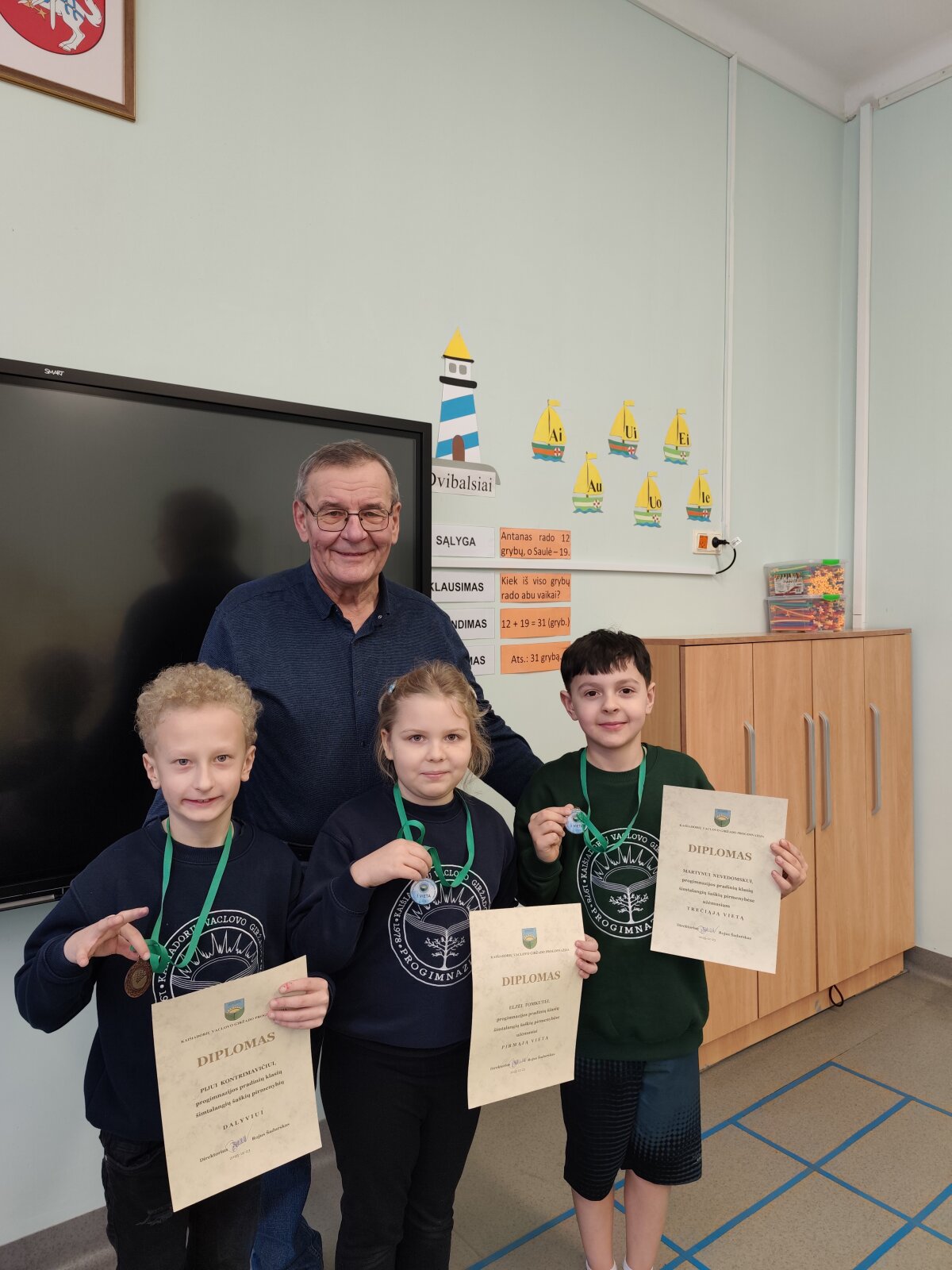 Virš dviejų mėnesių truko Progimnazijos pradinių klasių mokinių šimtalangių šaškių pirmenybės. Dėl medalių ir diplomų varžėsi 16 šaškių būrelio dalyvių. Kova buvo kaip niekad atkakli - po 25 taškus surinko Dominykas Kasparas (3c klasė), Augustas Strekauskas (3a klasė) ir Karina Bušmaitė (3b klasė). Dėka tarpusavio pergalės Dominykui atiteko aukso medalis ir nugalėtojo vardas. Antroji vieta atiteko Augustui. Tik tašku atsilikęs Faustas Janiulis tapo bronziniu prizininku. Jau minėta Karina tapo mergaičių čempione, antroje vietoje Joana Kobilinskaitė (4c klasė), trečia -Liepa Čiumbaraitė (3c klasė). Atskiroje įskaitoje antrokų grupėje geriausiai sekėsi Gustui Genevičiui ir Elzei Tomkutei (abu 2c klasė). Antras finišavo Majus Pilkis (2e klasė), o trečioje vietoje liko Martynas Nevedomskas (2c klasė). Visi jie buvo apdovanoti atitinkamais mažaisiais medaliais ir diplomais.