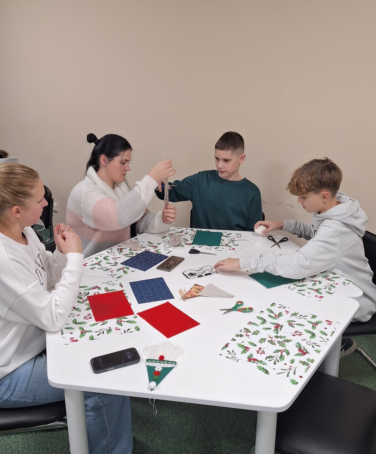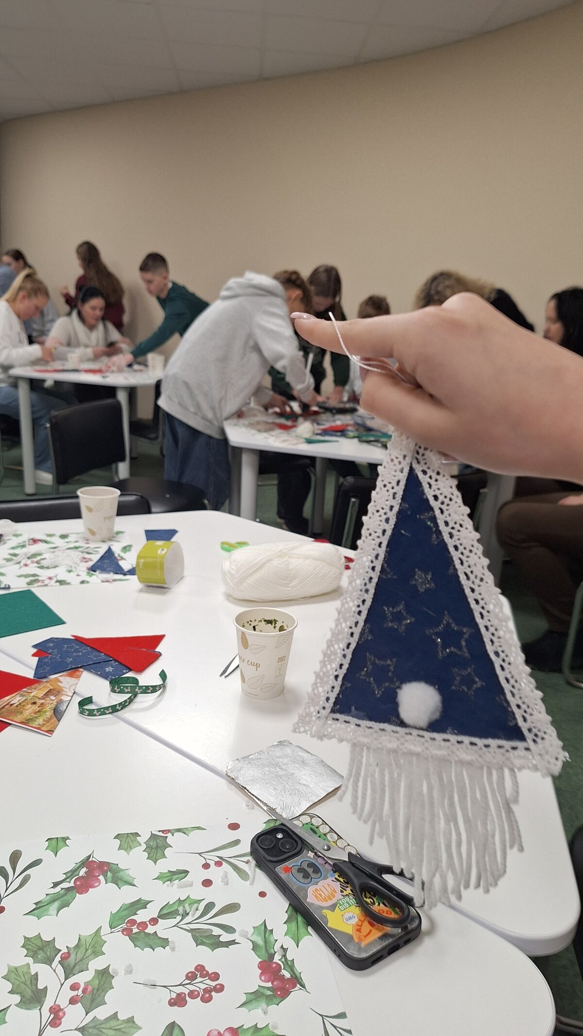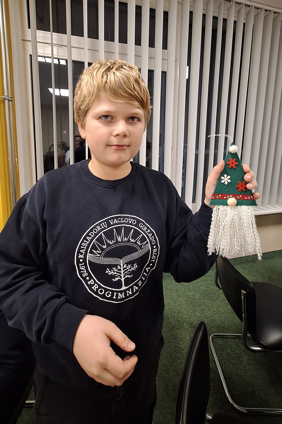Žiemišką lapkričio 27-osios vakarą, jaukiai papuoštoje progimnazijos bibliotekos erdvėje 5c klasės vadovė Dovilė Butėnienė subūrė mokinius ir jų tėvelius į kūrybines „Nykštuko dirbtuves“. Šį vakarą niekas niekur neskubėjo, o skambant kalėdinei muzikai visi kartu, padėdami vieni kitiems, kūrė dekoracijas, šiltai bendravo ir vaišinosi kvapnia žolelių arbata, kava bei savo atsineštomis vaišėmis. Vakaras neprailgo – jauki atmosfera, bendras kūrybinis džiaugsmas bei gautas rezuktatas ir nuoširdūs pokalbiai suartino visą klasės bendruomenę.