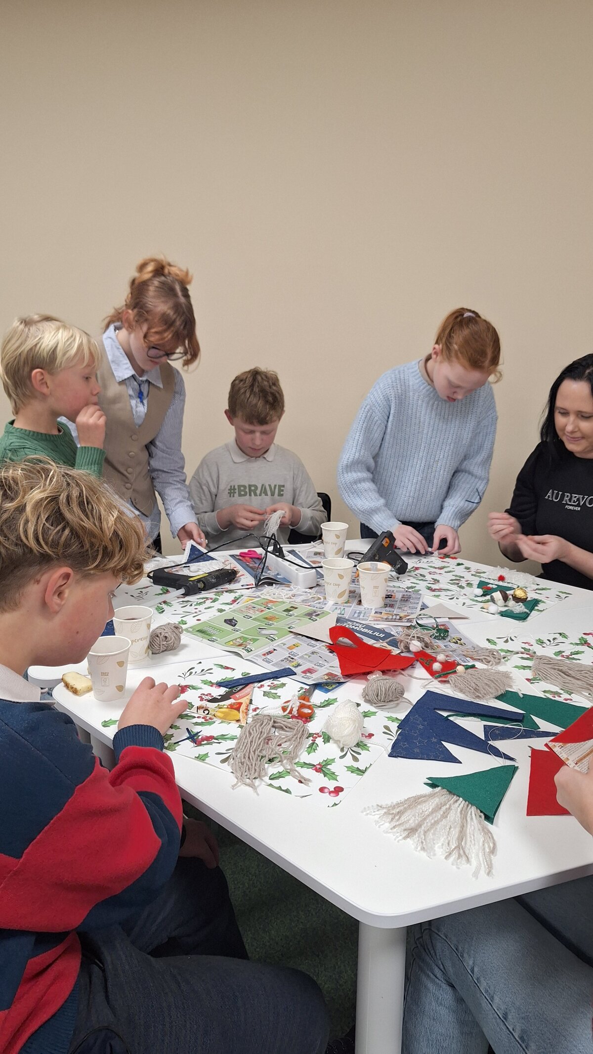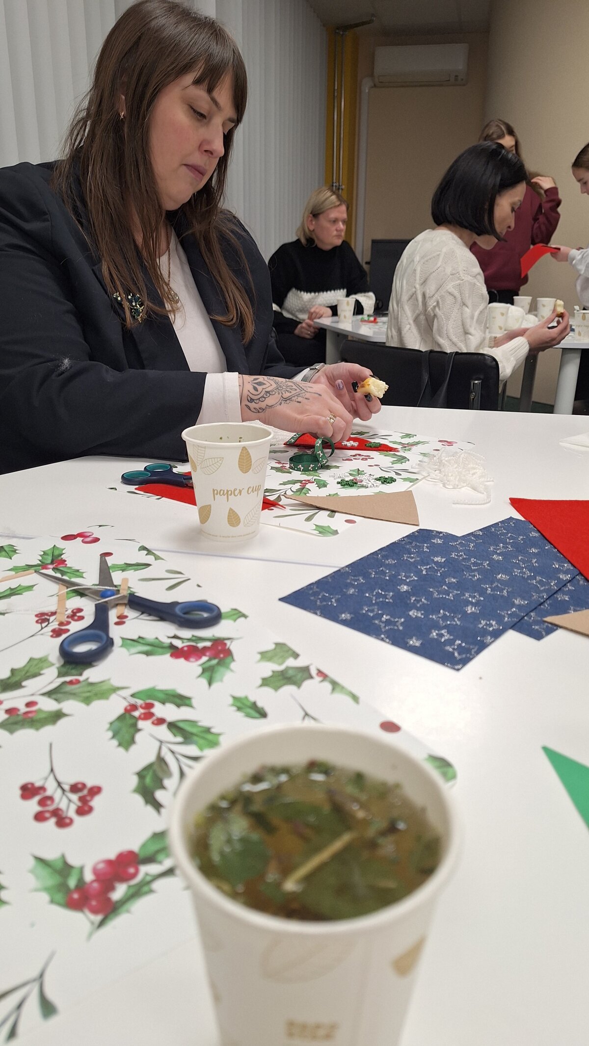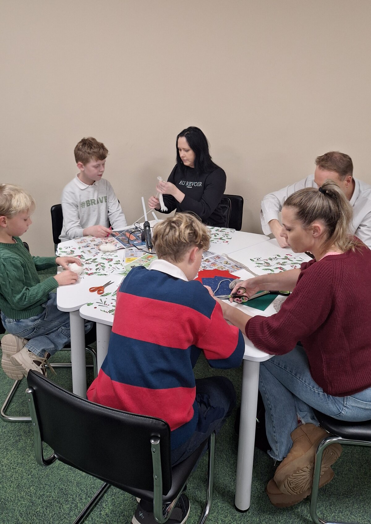 Žiemišką lapkričio 27-osios vakarą, jaukiai papuoštoje progimnazijos bibliotekos erdvėje 5c klasės vadovė Dovilė Butėnienė subūrė mokinius ir jų tėvelius į kūrybines „Nykštuko dirbtuves“. Šį vakarą niekas niekur neskubėjo, o skambant kalėdinei muzikai visi kartu, padėdami vieni kitiems, kūrė dekoracijas, šiltai bendravo ir vaišinosi kvapnia žolelių arbata, kava bei savo atsineštomis vaišėmis. Vakaras neprailgo – jauki atmosfera, bendras kūrybinis džiaugsmas bei gautas rezuktatas ir nuoširdūs pokalbiai suartino visą klasės bendruomenę.