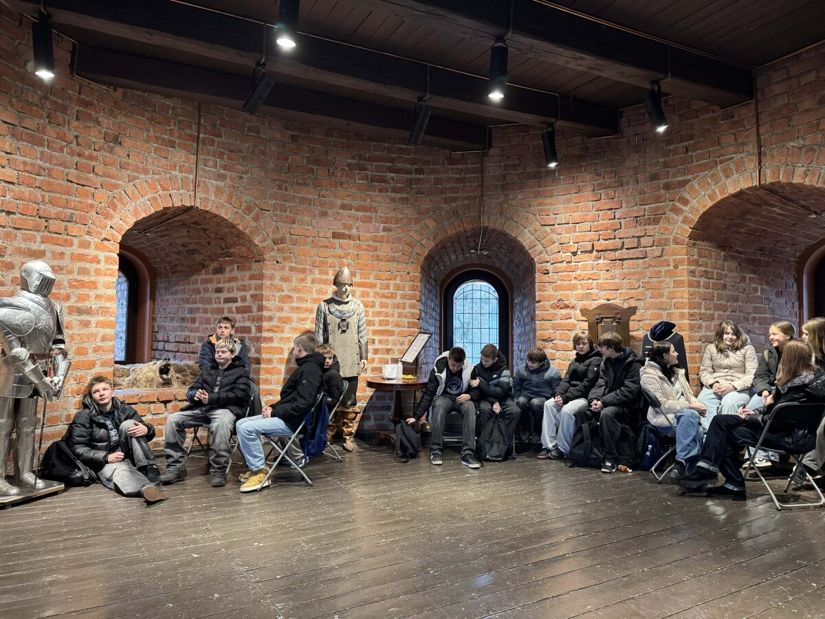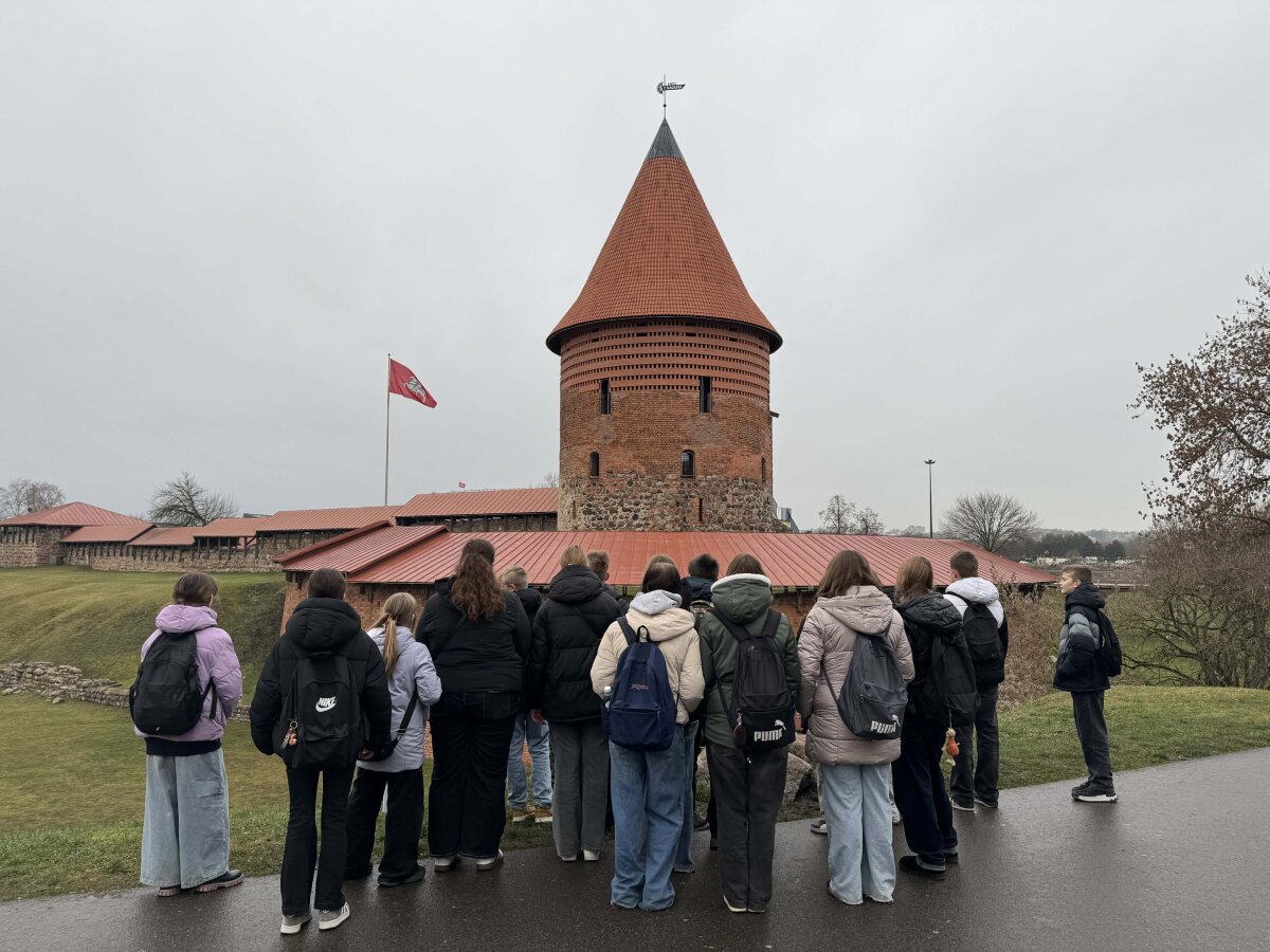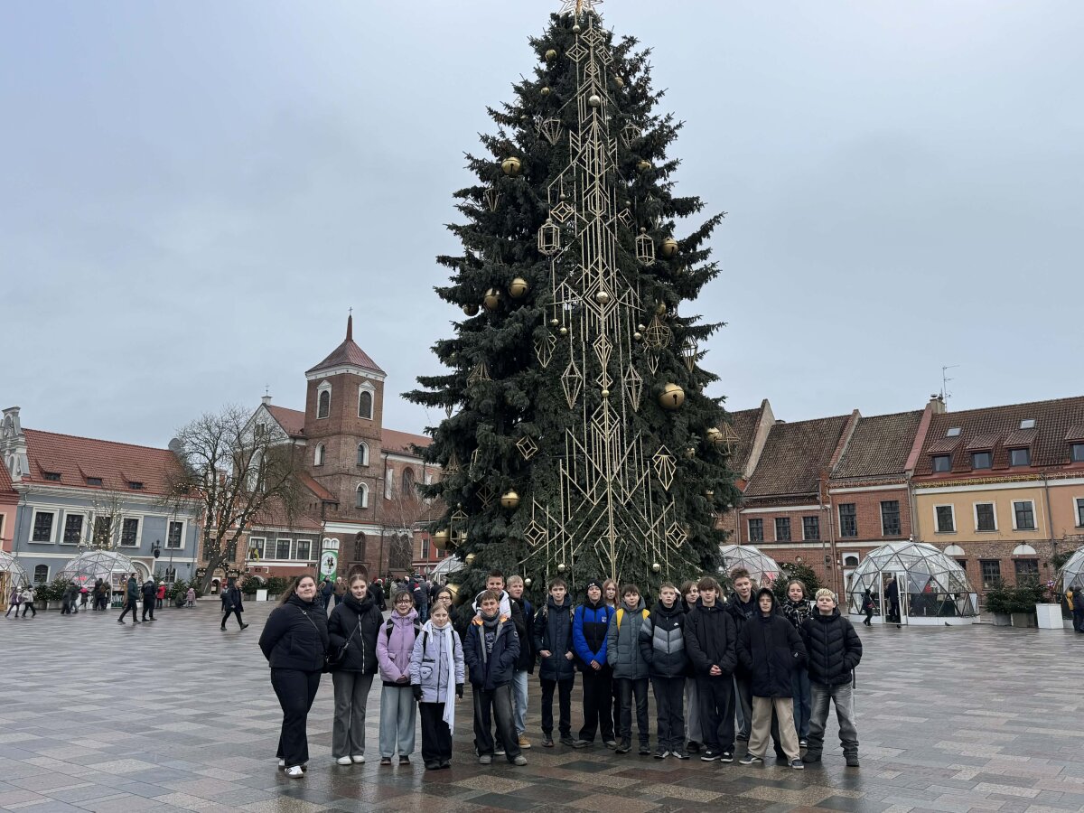 Pirmoji edukacija vyko Kauno pilyje. Čia susipažinome su pilies atsiradimo istorija, išgirdome daugybę įdomių gido pasakojimų bei faktų. Užkopę į pilies bokštą dalyvavome smagioje viktorinoje. Pergalė nebuvo lengvai pasiekiama – painių klausimų netrūko, tad teko gerai pasukti galvas. Laimėjo Regimanto komanda, tačiau, kaip dažnai būna, tikroji nugalėtoja buvo draugystė ir gera nuotaika. Trumpam stabtelėję pasigrožėti Kauno kalėdine eglute, toliau tęsėme pažintį su miestu – šį kartą Kauno rotušėje. Čia mūsų laukė edukacija, reikalaujanti ne tik smalsumo, bet ir biologijos žinių, kurias visai neseniai įgijome pamokose. Vaikštinėdami po erdves turėjome atlikti užduočių lapą, kuriame miestas buvo lyginamas su ląstele. Nors užduotys tikrai nebuvo lengvos, jas įveikėme su didžiuliu susidomėjimu. Vėliau leidomės į rotušės rūsį, kuriame apžiūrėjome atnaujintą ekspoziciją. Čia ne tik pamatėme istorinius radinius, bet ir „susipažinome“ su miesto kvapu, vyravusiu prieš kelis šimtus metų – patirtis, kuri tikrai įstrigo atmintyje! Smagiai nusiteikę išvykome į Akropolį, kur pasistiprinome ir šiek tiek pailsėjome. Galiausiai, Kalėdiniu traukiniu grįžome namo, kupini įspūdžių, žinių ir puikios nuotaikos.