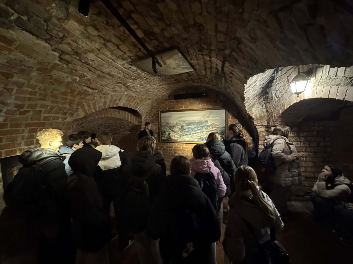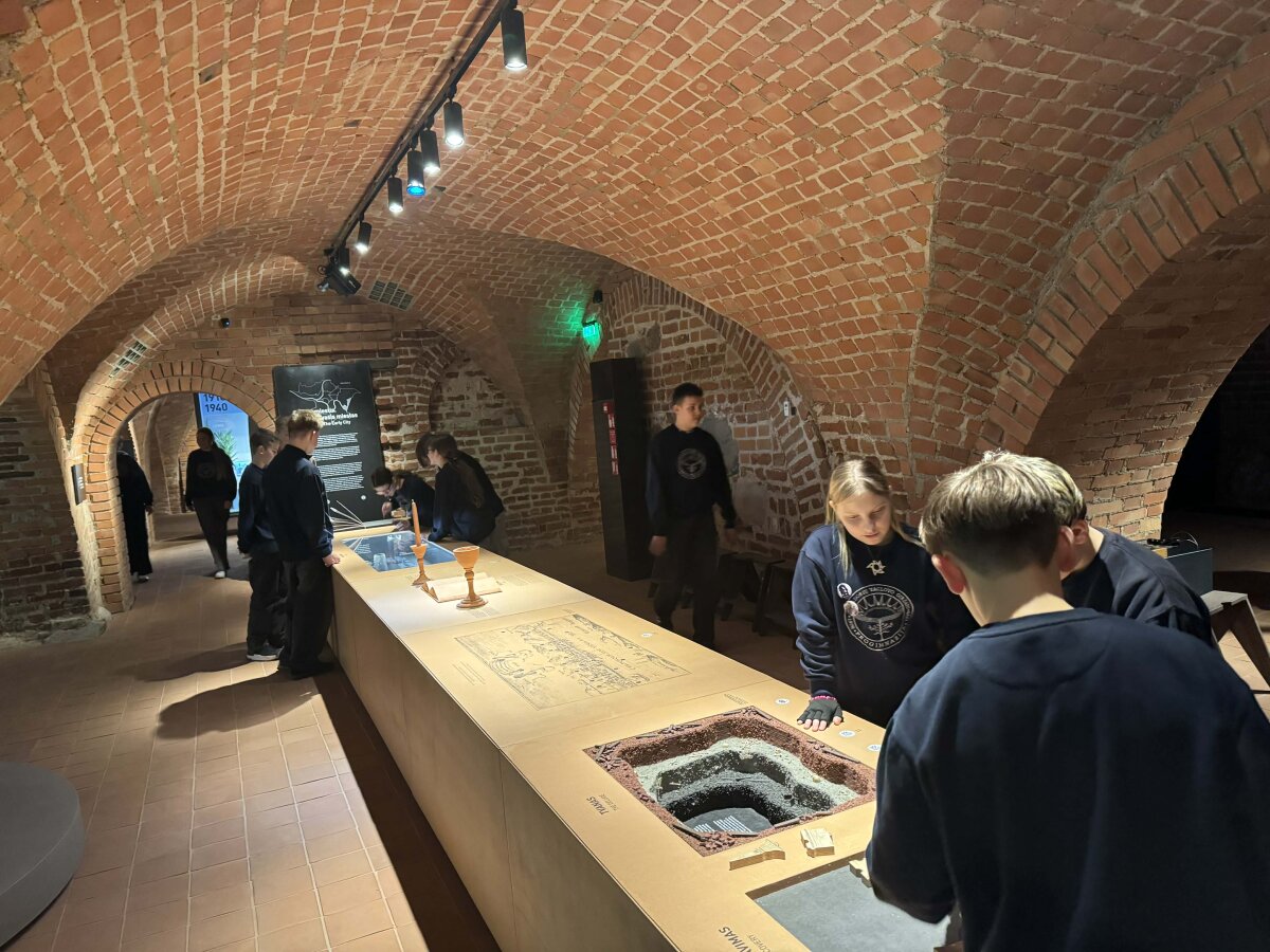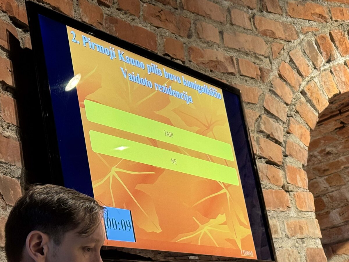 Pirmoji edukacija vyko Kauno pilyje. Čia susipažinome su pilies atsiradimo istorija, išgirdome daugybę įdomių gido pasakojimų bei faktų. Užkopę į pilies bokštą dalyvavome smagioje viktorinoje. Pergalė nebuvo lengvai pasiekiama – painių klausimų netrūko, tad teko gerai pasukti galvas. Laimėjo Regimanto komanda, tačiau, kaip dažnai būna, tikroji nugalėtoja buvo draugystė ir gera nuotaika. Trumpam stabtelėję pasigrožėti Kauno kalėdine eglute, toliau tęsėme pažintį su miestu – šį kartą Kauno rotušėje. Čia mūsų laukė edukacija, reikalaujanti ne tik smalsumo, bet ir biologijos žinių, kurias visai neseniai įgijome pamokose. Vaikštinėdami po erdves turėjome atlikti užduočių lapą, kuriame miestas buvo lyginamas su ląstele. Nors užduotys tikrai nebuvo lengvos, jas įveikėme su didžiuliu susidomėjimu. Vėliau leidomės į rotušės rūsį, kuriame apžiūrėjome atnaujintą ekspoziciją. Čia ne tik pamatėme istorinius radinius, bet ir „susipažinome“ su miesto kvapu, vyravusiu prieš kelis šimtus metų – patirtis, kuri tikrai įstrigo atmintyje! Smagiai nusiteikę išvykome į Akropolį, kur pasistiprinome ir šiek tiek pailsėjome. Galiausiai, Kalėdiniu traukiniu grįžome namo, kupini įspūdžių, žinių ir puikios nuotaikos.