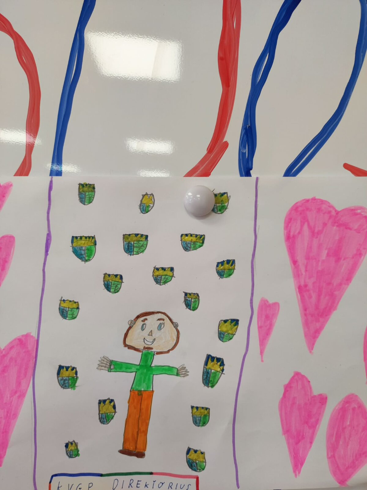 Netradicinę pamoką inicijavo patys mokiniai po nuoširdžių prevencinių pokalbių dalyvaujant socialinei pedagogei Linai Zaveckienei. Netradicinėje veikloje mokiniai žiūrėjo video inf. filmukus, patys rašė lentoje savo ateities planus „Kuo norėtum tapti užaugęs?“ Veiklos apibendrinimo metu, paaiškėjo, kad labai svarbus ir atsakingas yra Direktoriaus darbas. Mokiniams tapo smalsu - kaip sekasi mūsų progimnazijos Direktoriui? Trečiokai piešė portretus, kiti save, nes užaugę nori būti vadovais, vadybininkais ar net mokyklų vadovais. Pokalbių metu mokiniai pasakojo, kad patinka nauja parodyti ir išmokyti kitus. Tokios veiklos leido mokiniams suprasti profesijų įvairovę bei jų reikšmę kasdieniame gyvenime, siekti savo užsibrėžtų tikslų bei svajonių. Juk visų profesijų žmonės prisideda prie bendros gerovės, turiningesnio gyvenimo kūrimo.