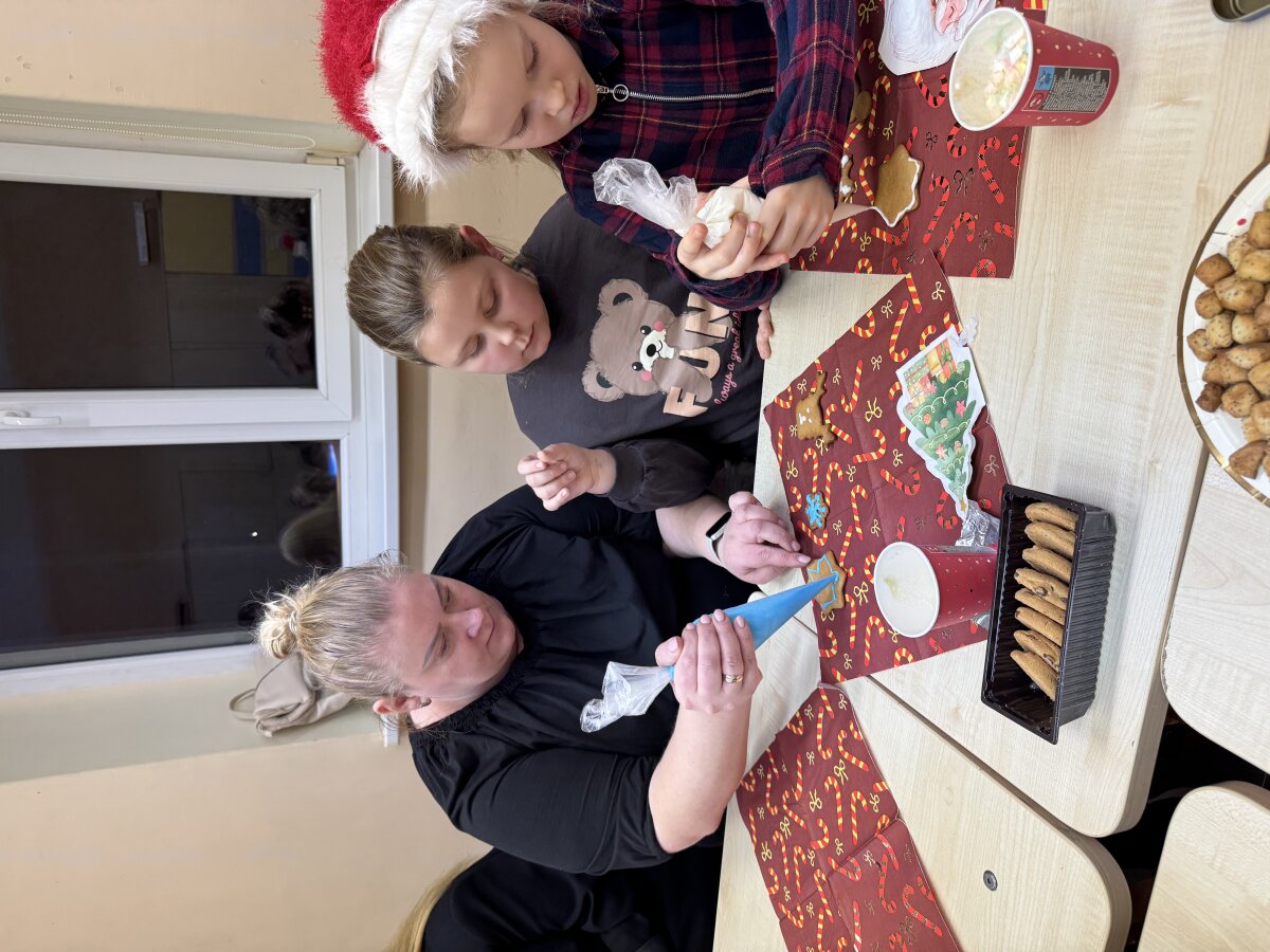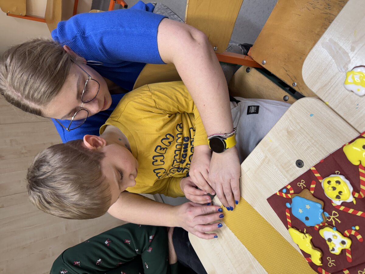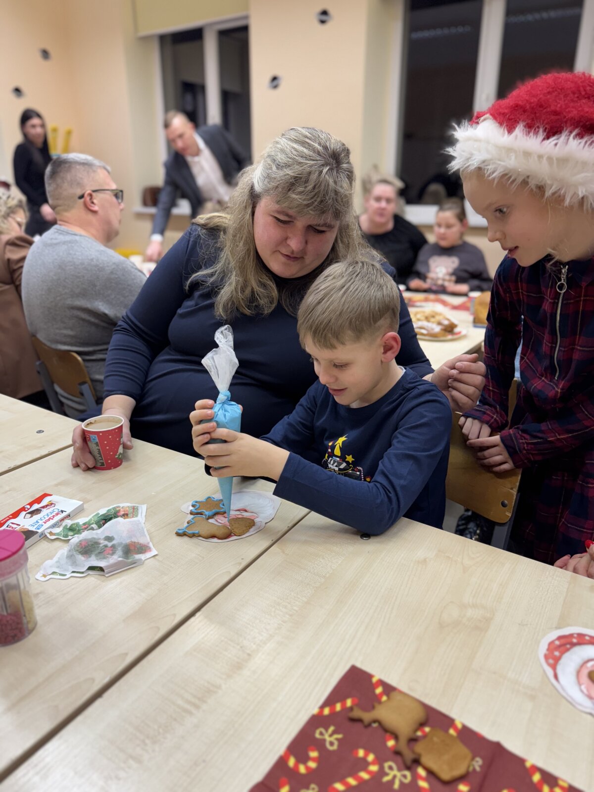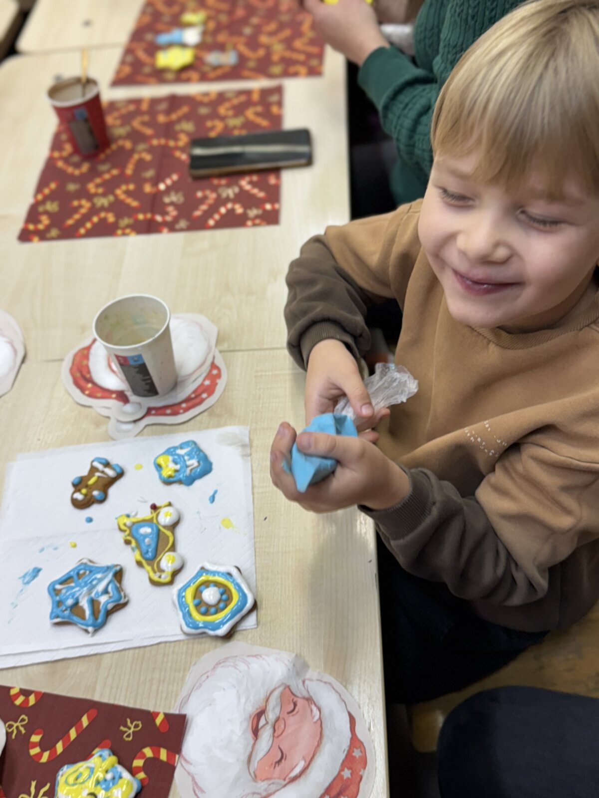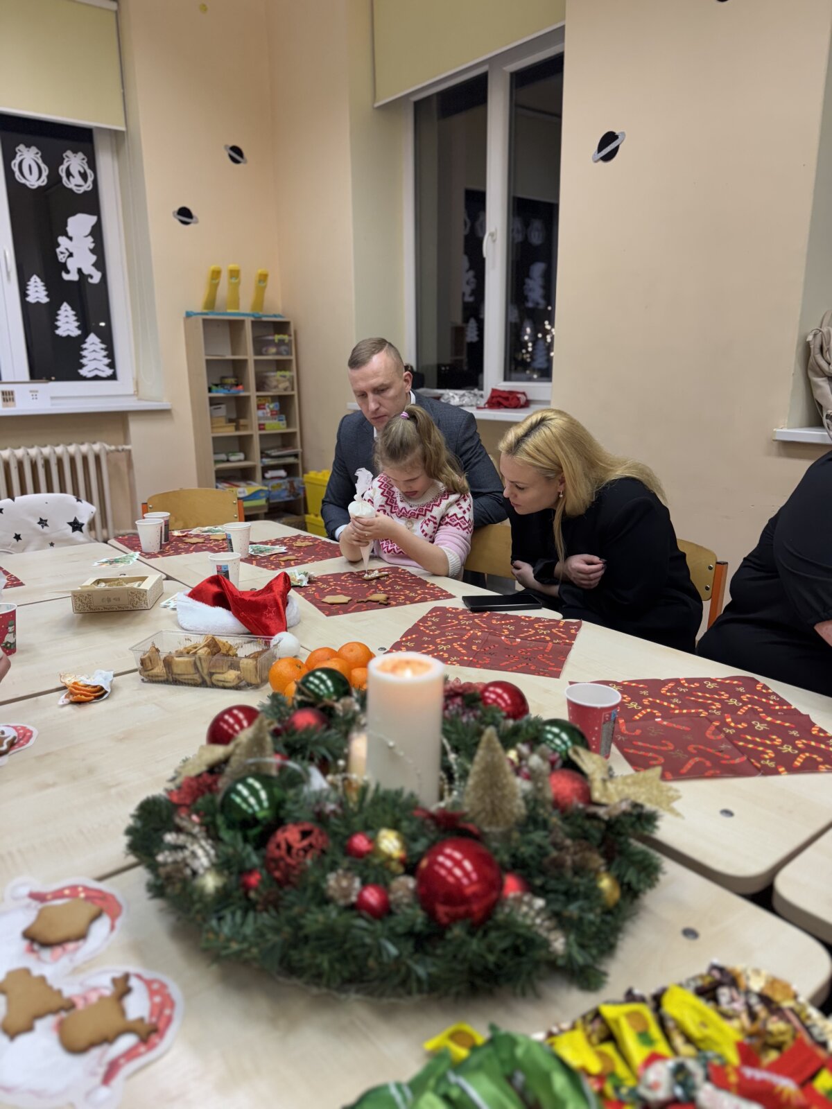 Vakaronėje padedant vienai iš klasės mamyčių visi kartu dekoravome meduolius. Kūrybinė veikla suvienijo vaikus ir tėvus, o šventinę atmosferą dar labiau sustiprino karšta kakava, arbata ir įvairūs skanėstai, kuriais vaišinomės. Kiekvienai šeimai mokytoja pasiūlė prasmingą veiklą – pasigaminti po šventinę žvakę iš bičių vaško. Kartu susisukome po žvakę, kuri taps jaukiu akcentu namuose ir primins šį gražų bendrystės vakarą.
