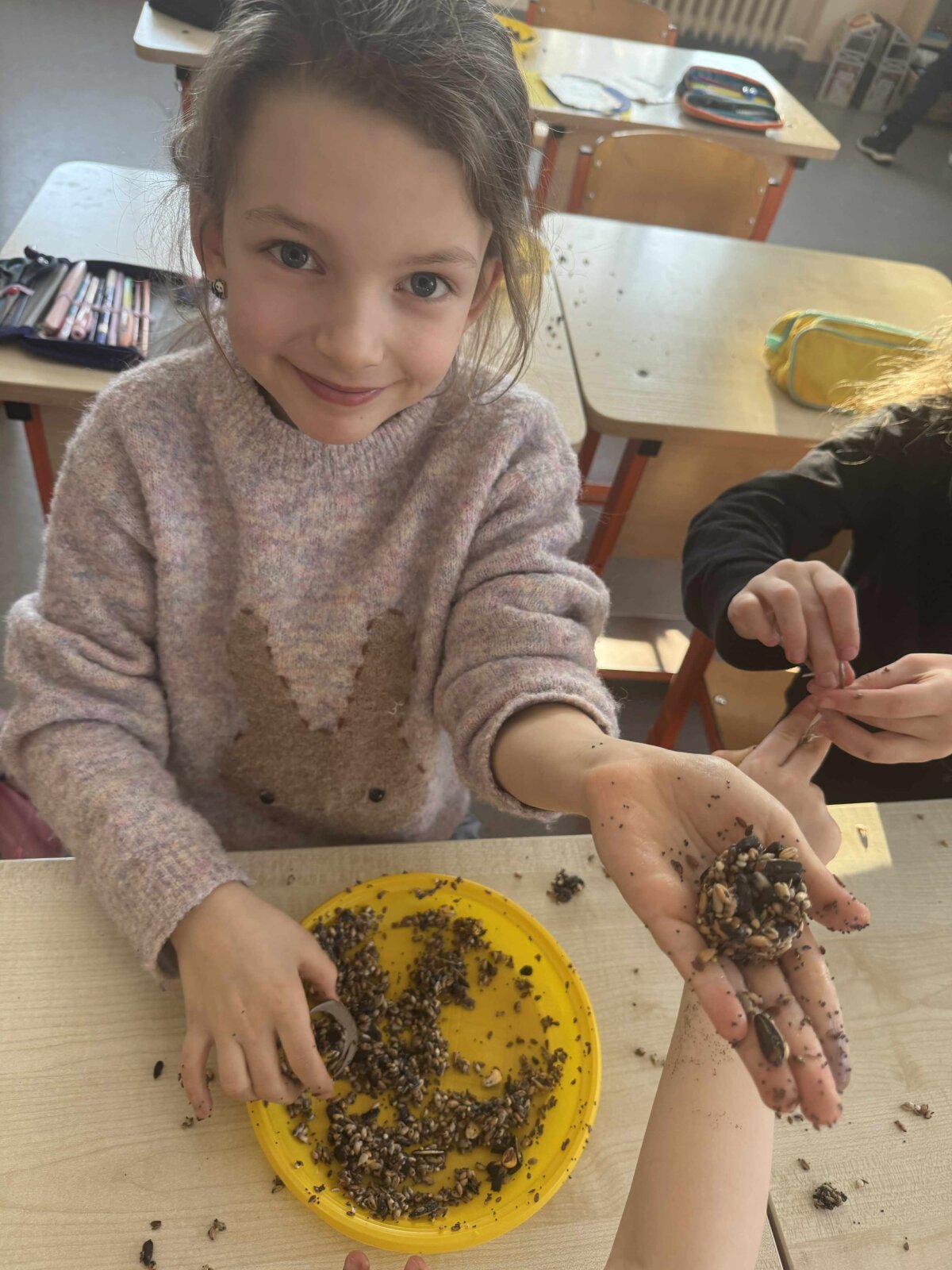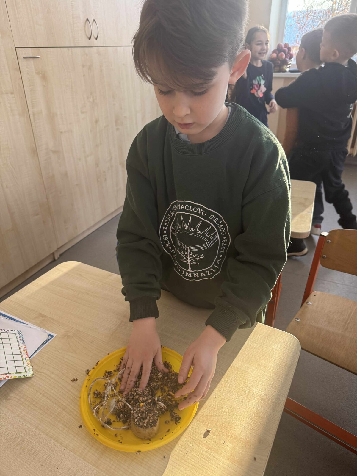 Per gamtos mokslų pamoką 1d klasės mokiniai dalyvavo praktinėje veikloje – gamino paukščiams skirtus maisto skanėstus. Veikla buvo susieta su mėnesio tema „Kaip eina laikas?“. Pamokos metu mokiniai aptarė, kaip bėgant laikui keičiasi metų laikai, kodėl žiemos metu paukščiams tampa sunkiau rasti maisto ir kaip žmonės gali prisidėti prie gamtos puoselėjimo. Praktinė užduotis padėjo vaikams geriau suprasti gamtos cikliškumą ir žmogaus vaidmenį rūpinantis aplinka. Veikla skatino mokinių atsakomybę, rūpestingumą ir bendradarbiavimą, taip pat ugdė pažinimo bei praktinius įgūdžius. Mokiniai suprato, kad laikas gali būti suvokiamas ne tik per laikrodį ar kalendorių, bet ir per gamtoje vykstančius pokyčius.