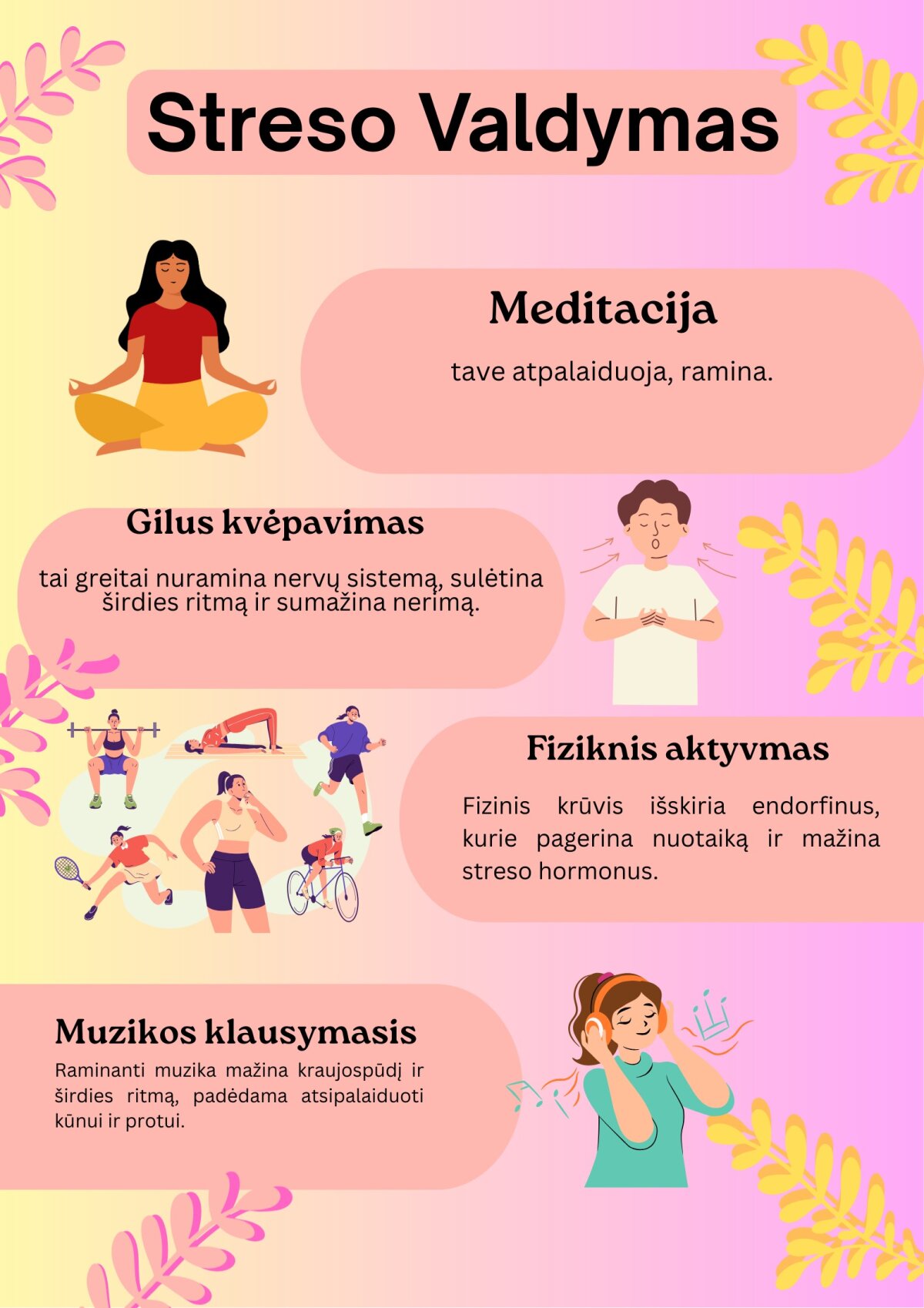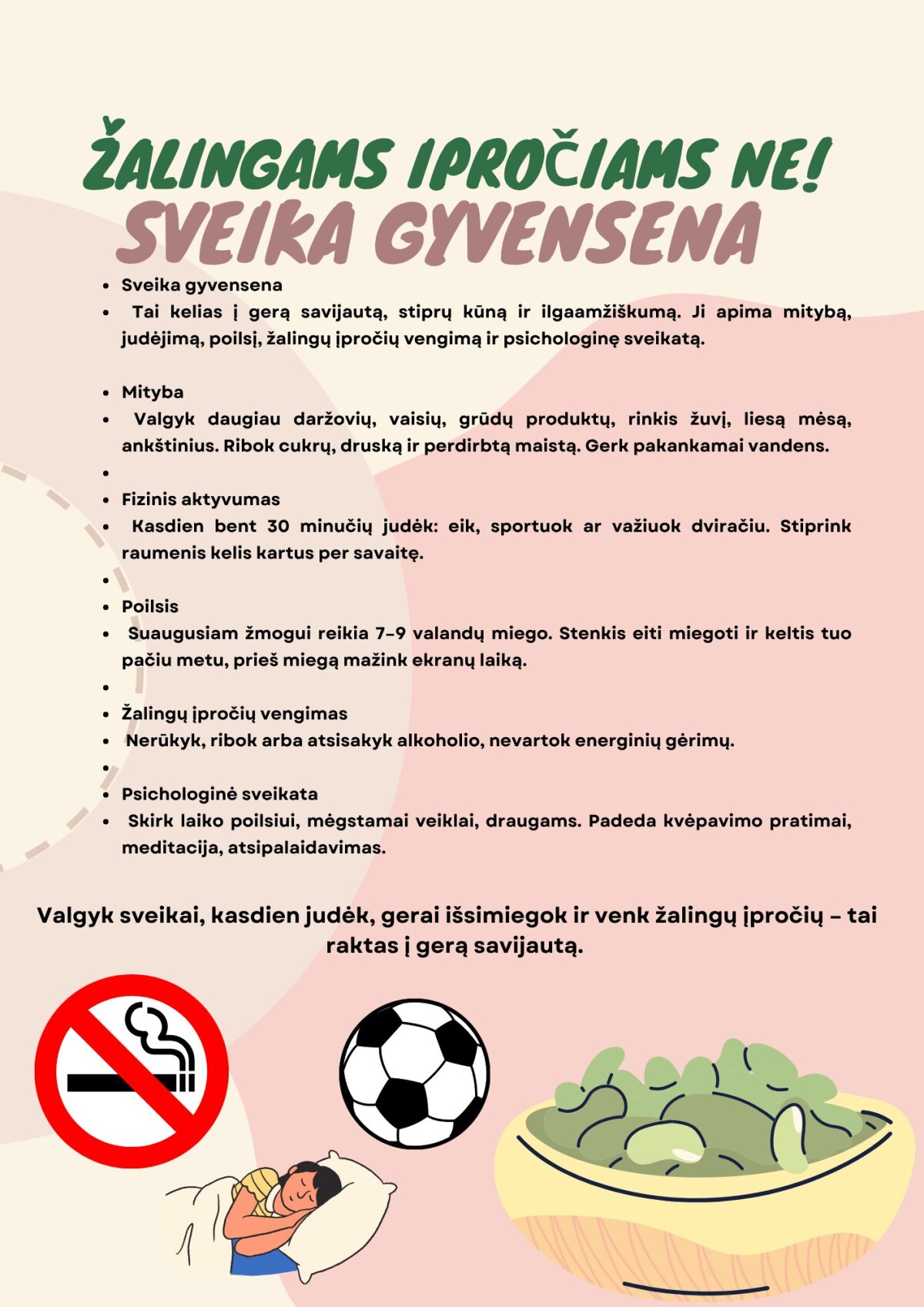 Rugsejo 29 – spalio 3 dienomis integruotų dailės ir psichologo bei socialinio pedagogo pamokų metu su visais 5 - 8 klasių mokiniais kalbėjomės apie geros psichinės sveikatos reikšmę mūsų bendram gerbūviui, aptarėme didžiausius pavojus ir įvairias psichinės sveikatos tausojimo ir stiprinimo galimybes. Mokiniams tai nėra naujiena, nes apie psichinę sveikatą, artėjant spalio 10 – ajai – Pasaulinei psichikos sveikatos dienai, kalbamės kiekvienais metais. Šiais metais šiai dienai besiruošiant įvairiomis kompiuterinėmis programėlėmis mokiniai kūrė plakatus psichikos sveikatos tema, taip pat dalyvavo apklausoje „Iššūkiai ir sprendimai: 5-8 klasių mokinių sunkumai ir jų įveikos būdai“ ir konfidencialiai atsakė į klausimus apie tai, su kokiais sunkumais jie susiduria šiame savo gyvenimo etape bei kas tuos sunkumus jiems padeda įveikti.