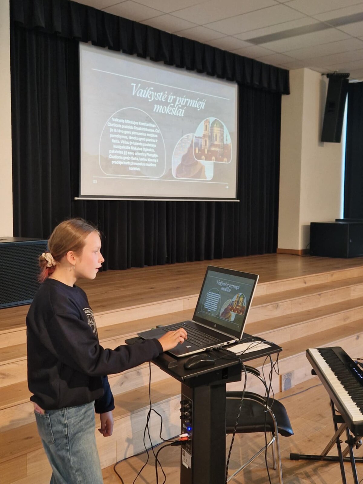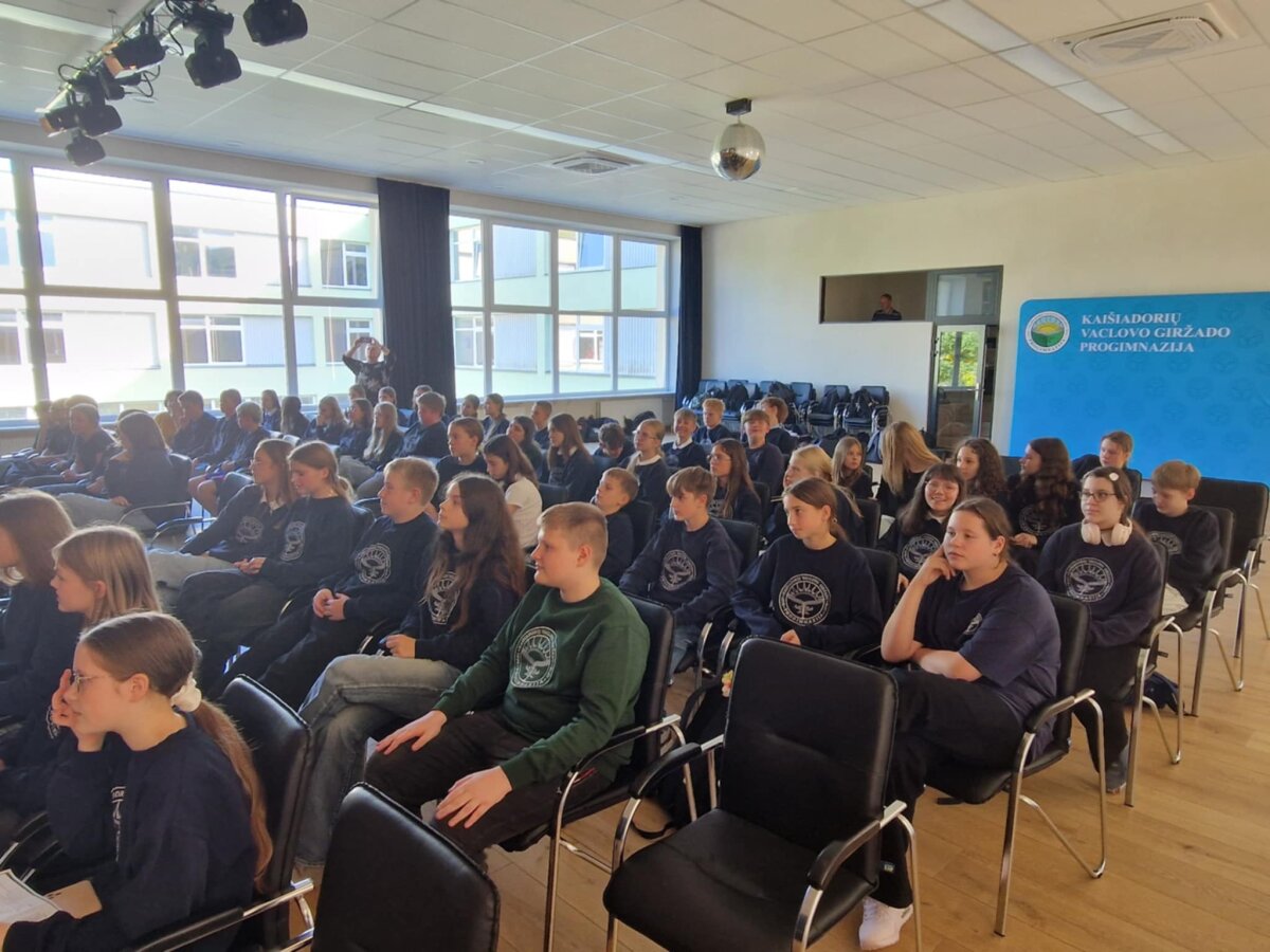 Spalio 7 dieną septintųjų klasių mokiniai paminėjo iškilaus Lietuvos menininko, kompozitoriaus ir dailininko Mikalojaus Konstantino Čiurlionio gimtadienį. Renginio metu mokiniai klausėsi 7c klasės mokinių Eiprilės Kareniauskaitės, Smiltės Alionytės ir Agotos Neniškytės paruoštų pasakojimų apie menininko gyvenimo ir kūrybos kelią. Susitikime aptarta, kaip Čiurlionis gebėjo sujungti muziką ir dailę, kurdamas ypatingą pasaulį, kupiną spalvų, simbolių ir jausmų. Skambėjo mokinių atliekama fortepijoninė muzika, grojo 7c klasės mokinė Guosnė Džekčioraitė (klasės draugai pritarė varpeliais) ir 7e klasės mokinė Patricija Žiužnytė. Nuskambėjo ir dzūkų liaudies daina „Oi, giria, giria“, o renginio pabaigoje visi dalyvavo žinių patikrinimo žaidime „Kahoot“, kuris suteikė azarto ir padėjo smagiai įtvirtinti žinias.