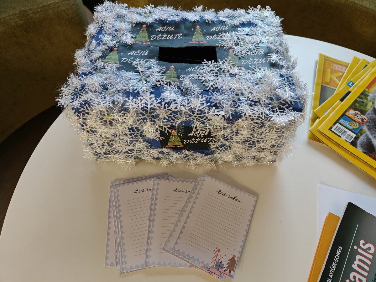 Šiemet bibliotekoje atsirado ir ypatinga „Ačiū dėžutė“ – Kalėdiškai papuošta vieta, skirta dėkingumo žinutėms. Mokiniai ir mokytojai kviečiami užrašyti, kam ir už ką yra dėkingi, įvardyti gražius darbus, šiltas akimirkas ar kasdienį gerumą, kurį dažnai pamirštame pastebėti. Dėžutėje kaupiami žodžiai – tai tikri bendruomenės šviesos spinduliai, primenantys, kad kalėdinė dvasia prasideda nuo paprasto „ačiū“.
