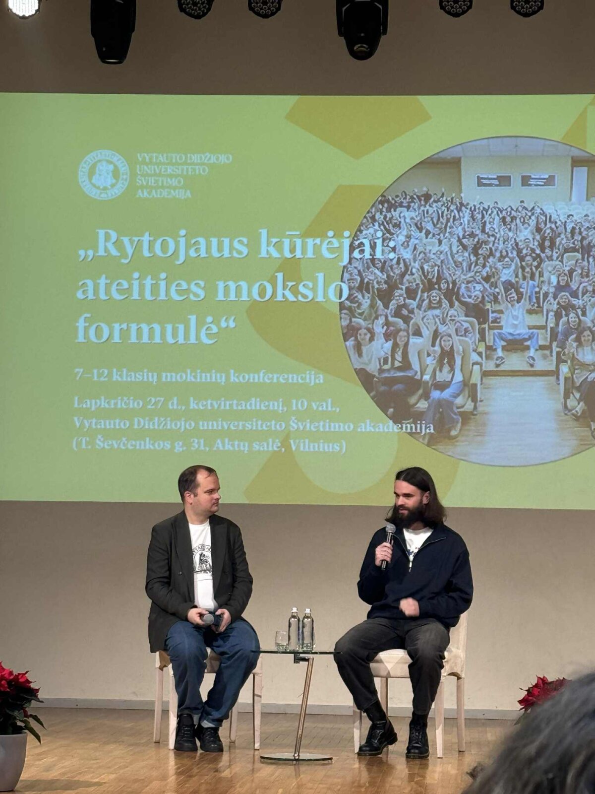 Lapkričio 27 d. VDU Švietimo akademijoje Vilniuje vyko 7–12 klasių mokinių konferencija „Rytojaus kūrėjai: ateities mokslo formulė“. Renginys subūrė įvairių miestų ir miestelių progimnazijų ir gimnazijų mokinius, kurie dalinosi mokslo, verslumo, tyrimų ir projektinių veiklų idėjomis, atradimais bei įkvepiančiomis patirtimis.