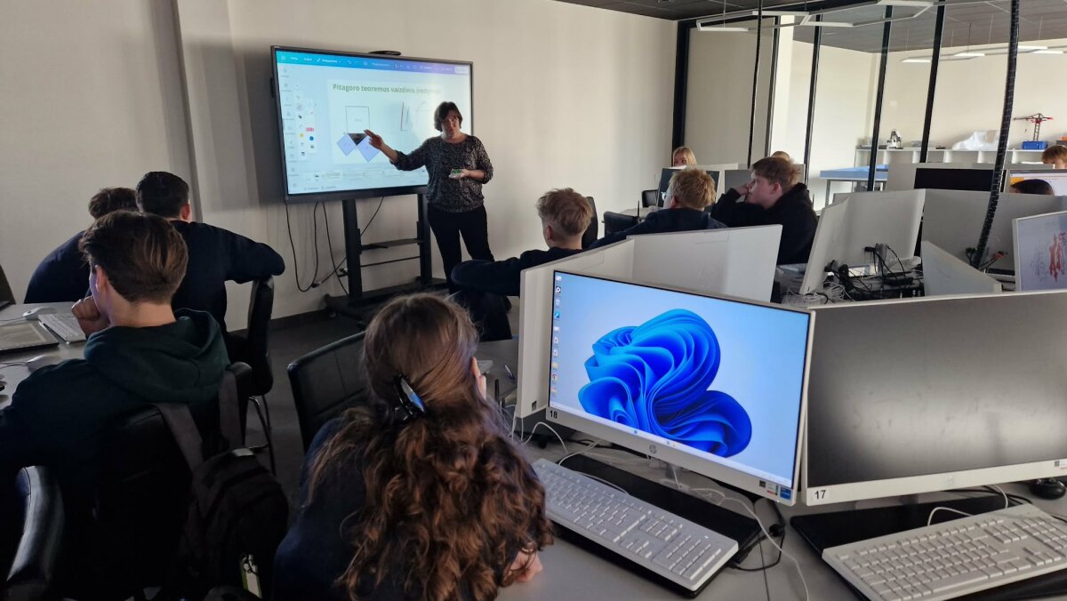 Pitagoro teorema apibrėžia ryšį tarp stačiojo trikampio kraštinių. Tačiau ši formulė dažnai mokiniams atrodo nutolusi nuo praktikos. Siekdamos pakeisti tokį požiūrį, mokytojos sujungė pajėgumus ir pakvietė mokinius į integruotas pamokas, apjungiančias teoriją ir praktiką.