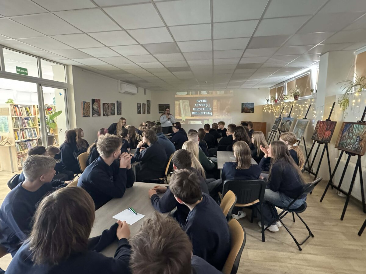 Balandžio 9 dieną išvyko 7c ir 7d klasės. Po edukacijų Mokslo saloje mokiniai apsilankė Kauno Vinco Kudirkos viešosios bibliotekos Girstupio padalinyje. Čia jie dalyvavo edukacinėje veikloje, kurioje ne tik susipažino su bibliotekos erdvėmis ir galimybėmis, bet ir aktyviai įsitraukė į interaktyvias užduotis. Mokiniai varžėsi tarpusavyje, sprendė „Kahoot“ viktorinas, lavino komandinio darbo įgūdžius bei smagiai ir prasmingai leido laiką.