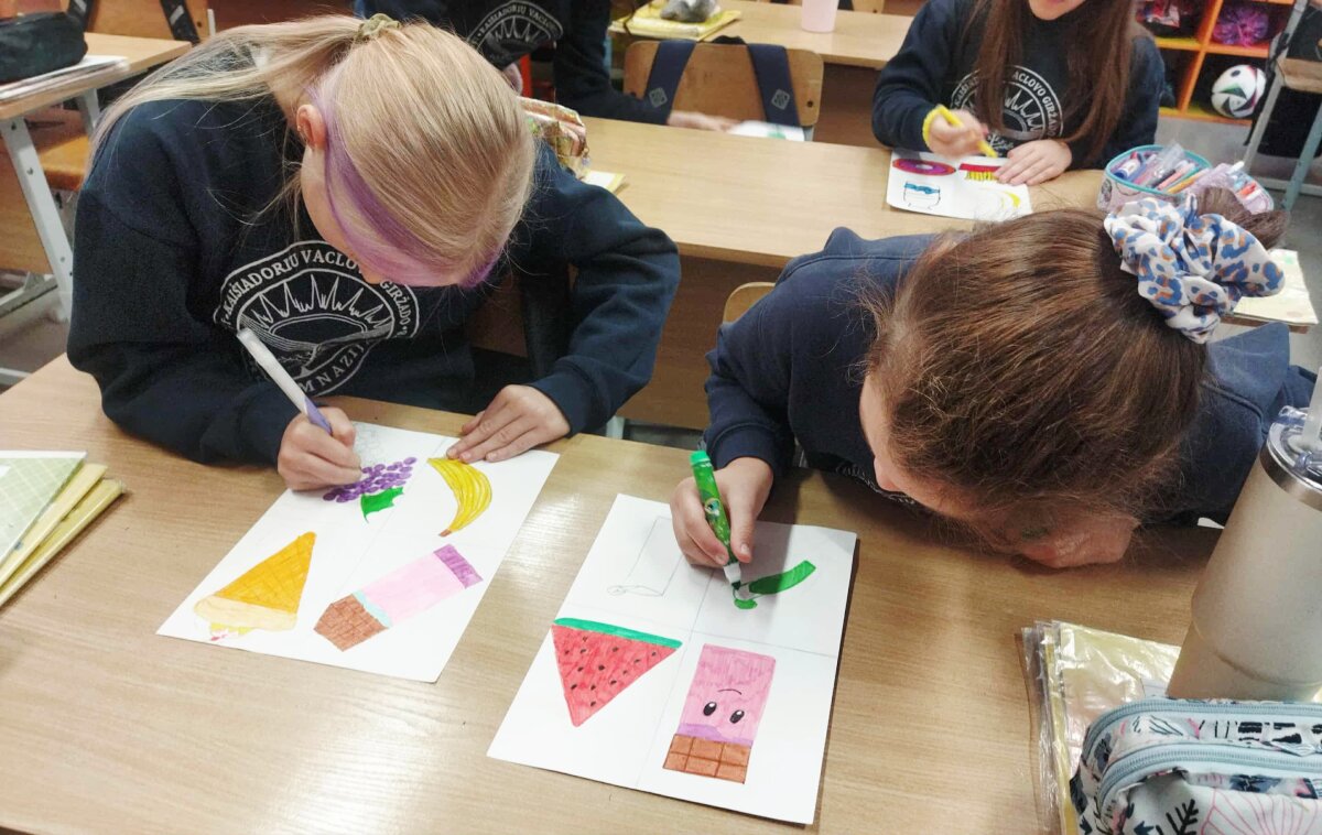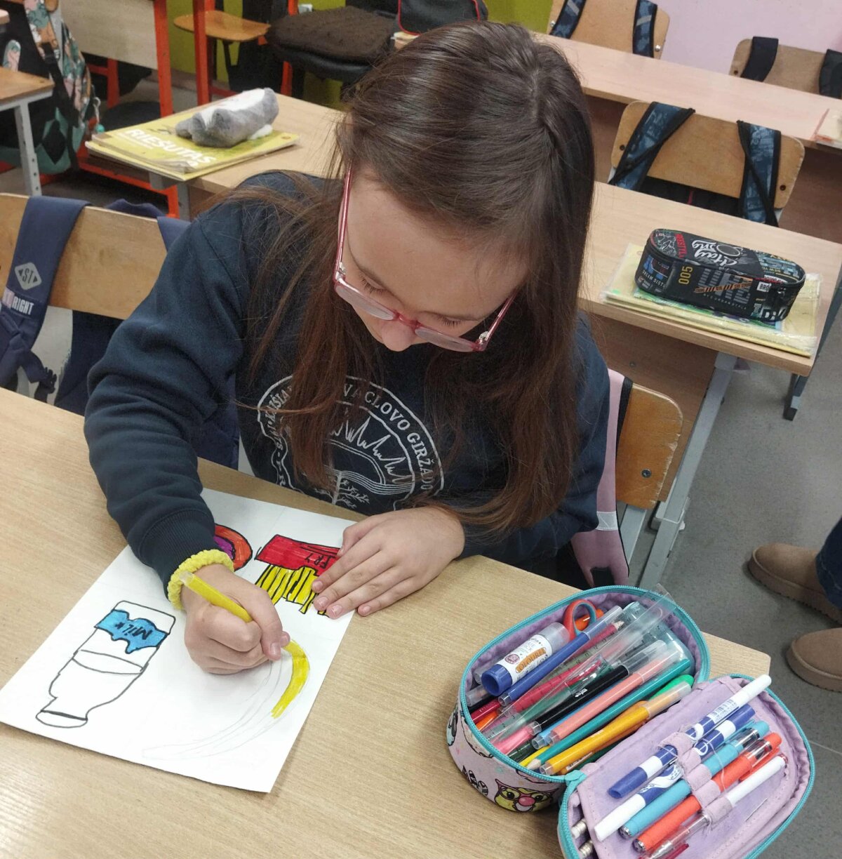 Sveikos gyvensenos pasaulis - pilnas skonių, spalvų ir pojūčių! Į tokių atradimų nuotykį spalio 16 d. leidosi 4b klasės mokiniai kartu su mokytojomis Rasa Mackevičiene ir Dovile Butėniene. Keliaudami per sveikų maisto produktų šalį, mokiniai aiškinosi, kas naudinga mūsų kūnui, kas suteikia energijos, o kokių gardėsių reikėtų ragauti tik retkarčiais. Anglų kalbos pamokose mokiniai mokėsi anglų kalbos žodžių, susijusių su sveika mityba, ir kūrė spalvingas įvairių maisto produktų korteles, kurias vėliau pristatė klasės draugams bei klijavo ant sveiko maisto piramidės modelio. Smagiausia veiklos dalis buvo paskirstyti korteles į žaismingas "sveiko"/"healthy" ir "nesveiko"/"unhealthy" maisto dėžutes, kurias paruošė mokytojos.