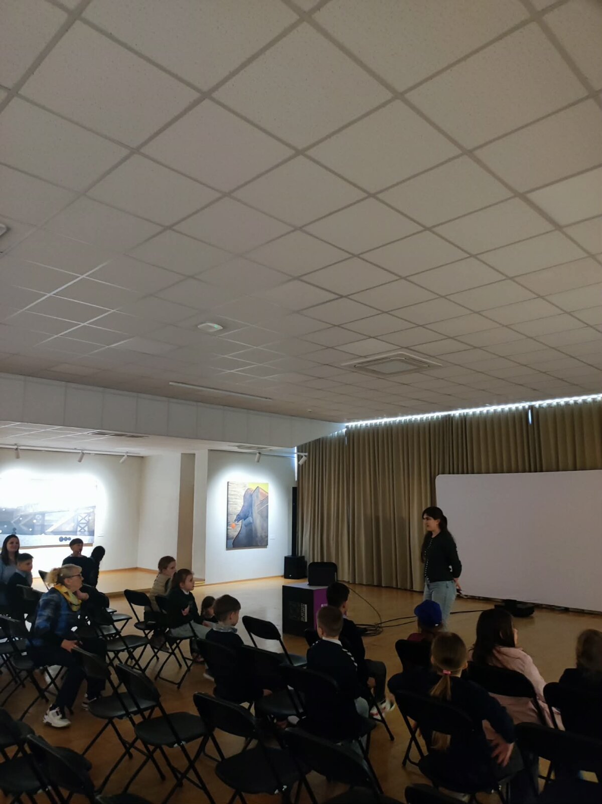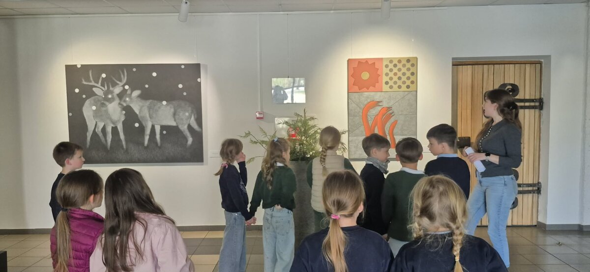 Įpusėjus parodos lankymui, prie mūsų prisijungė KKC renginių koordinatorė Evelina B. ir papasakojo daugiau apie pačią parodos autorę ir akcentinių kūrinų subtilybes bei menininkės favoritinį paveikslą, kuris jau parduotas.