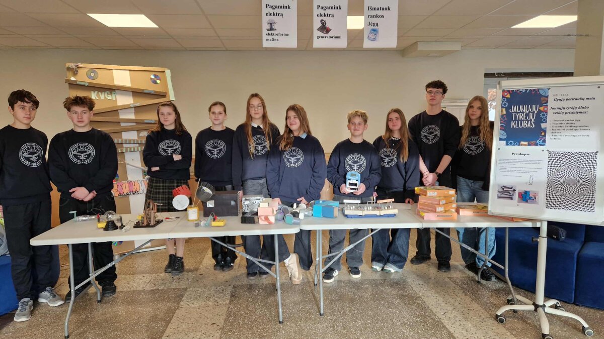 Klubo nariai demonstravo pačių sukurtą Goldbergo mašiną. Su šiuo prietaisu Progimnazijos komanda dalyvavo Jaunųjų inžinierių čempionate STEAM TEAM 2025 pusfinalyje užėmė 3 vietą.